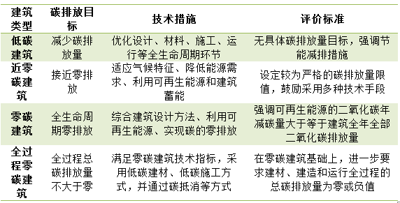 低碳建筑、近零碳建筑、零碳建筑和全过程零碳建筑在碳排放目标、技术措施和评价标准上存在明显的区别。随着建筑领域对节能减排和可持续发展的要求不断提高,四种建筑类型将逐渐成为未来建筑发展的进阶之路。