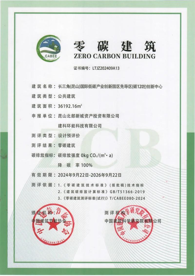 近日,在国家“碳达峰、碳中和”目标提出四周年之际,中国建筑节能协会在北京组织举办“2024第一批零碳建筑项目发布会暨零碳建筑技术论坛”,长三角(昆山)国际低碳产业园区先导区(碳12坊)创新中心成为全国首批测评通过的16个零碳建筑项目之一,也是长三角地区唯一(改造类)获得零碳建筑设计预评价认证的项目。