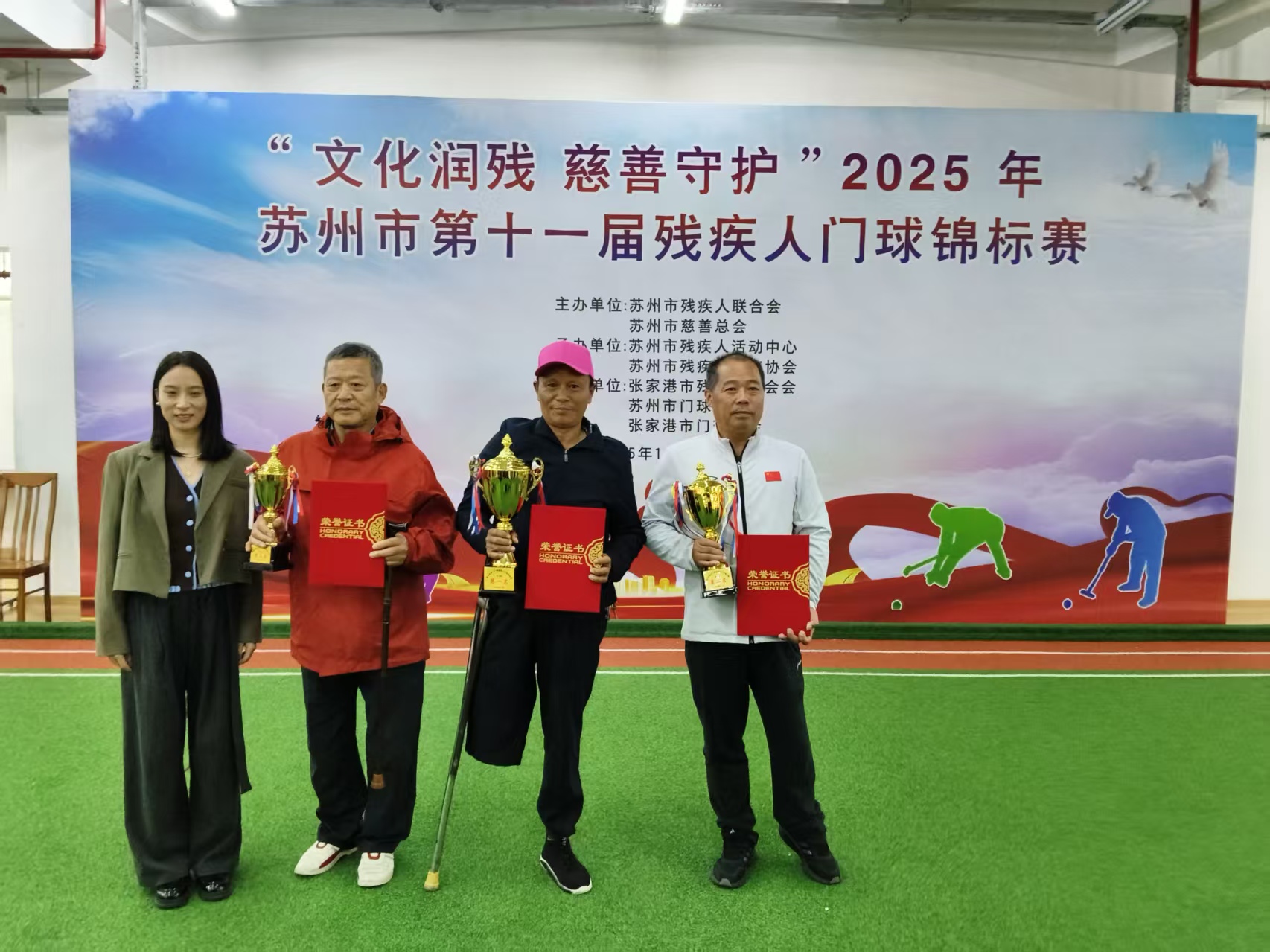 11月13日至14日,“文化润残慈善守护”2025年苏州市第十一届残疾人门球锦标赛在张家港市门球馆成功举办。本届赛事汇聚了来自苏州市区的精英队伍,昆山市残联精心选派了男、女运动员各6名,组成两支队伍参与此次角逐。