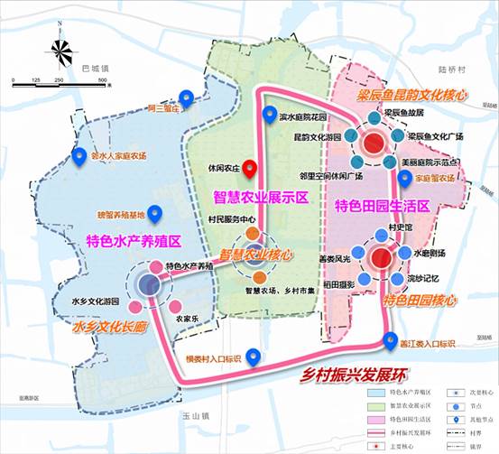 “四核”:梁辰鱼昆韵文化核心、特色田园核心、智慧农业核心、水乡文化长廊;