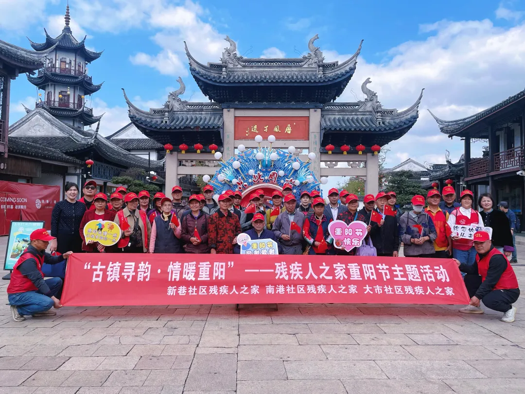 金秋送爽,重阳情浓。为让残疾人朋友在传统节日中感受文化魅力与社会关怀,10月23日,张浦镇新巷、南港、大市3个社区“残疾人之家”联合举办“古镇寻韵・情暖重阳”主题活动,40位残疾朋友在志愿者的陪伴下,共同开启一场充满温情的古镇游览之旅。