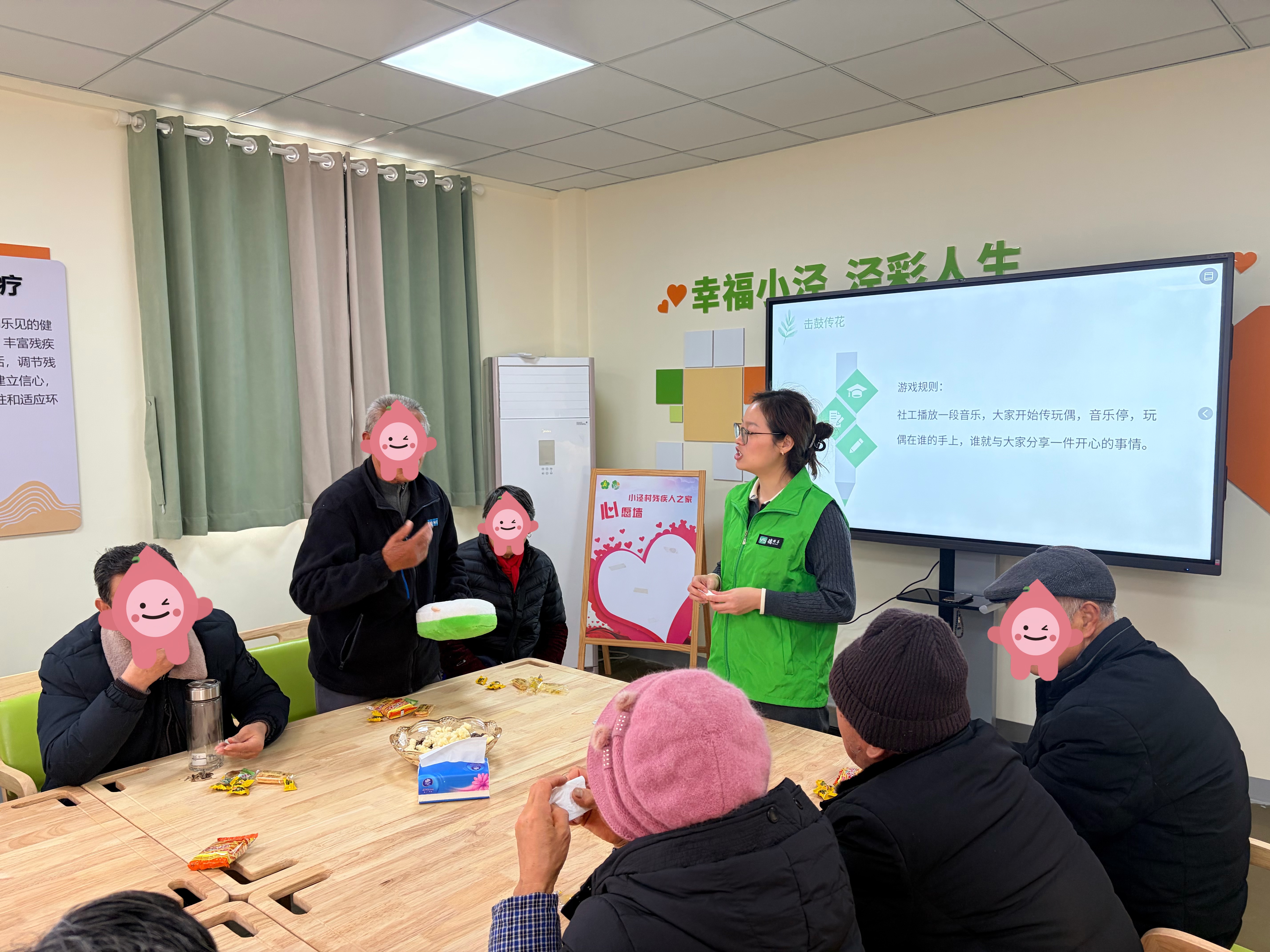 在“心声茶话会”环节,大家围坐于崭新的活动区,伴着茶水点心,畅谈对新环境的感受、对未来活动的期待,以及日常生活中的需求。社工与志愿者认真倾听并记录,现场氛围温暖融洽。接下来的“击鼓传花”小游戏,则将气氛推向轻松愉快的高潮。音乐暂停时,“中奖”的伙伴分享了自己近期的开心事,笑声与掌声不断。活动最后,大家一同分享蛋糕,互送祝福,在崭新的环境里留下了甜蜜温馨的集体回忆。
