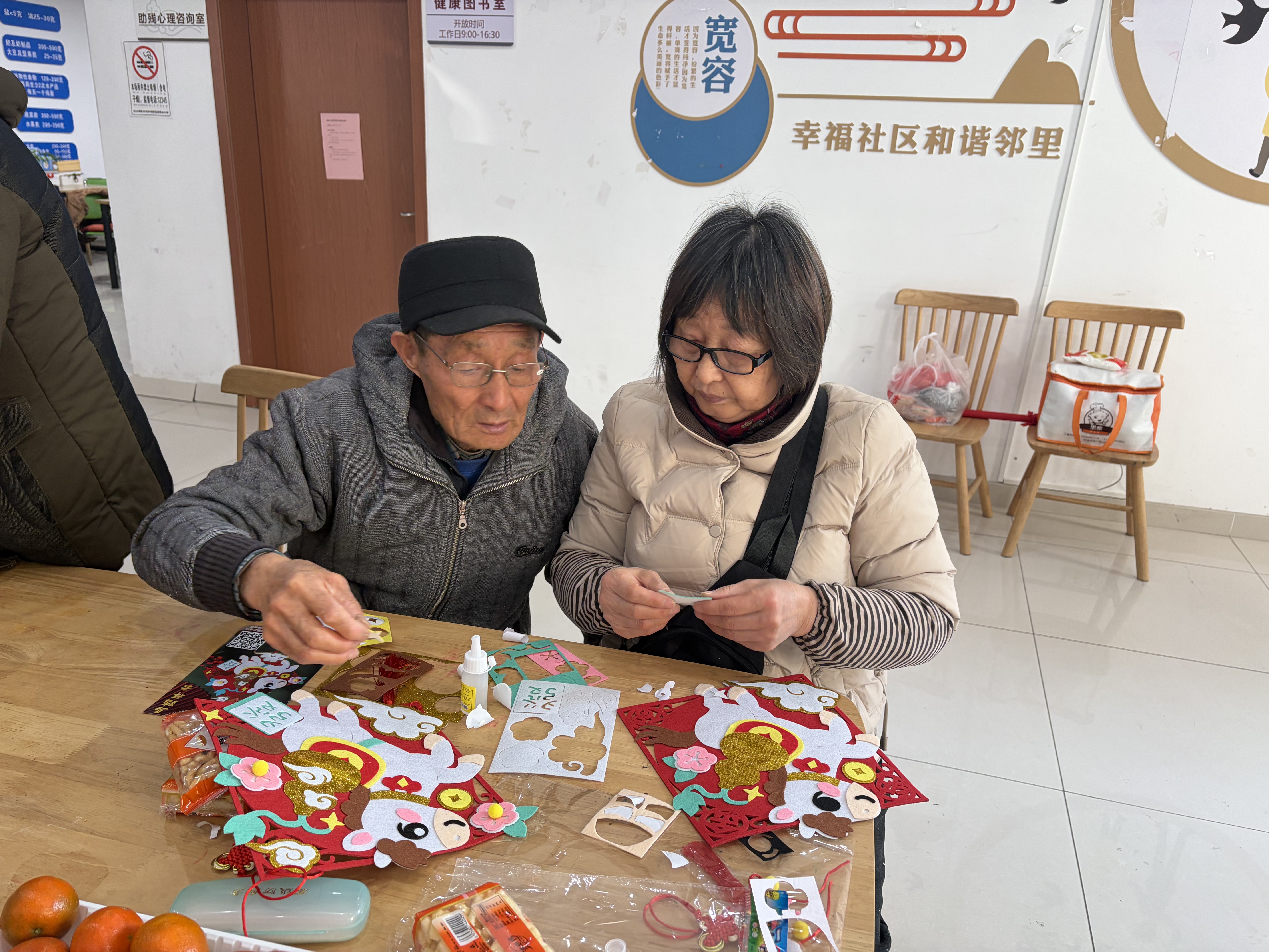 手工制作区内,志愿者准备了各式材料,指导大家制作春节挂件。从穿绳、打结到装饰,每一步都耐心示范、鼓励创作。残疾人朋友们专注动手,指尖渐渐呈现出色彩鲜艳、造型精巧的挂件。手捧自己的作品,大家成就感满满,笑容中洋溢着喜悦,也为即将到来的春节增添了喜庆气氛。