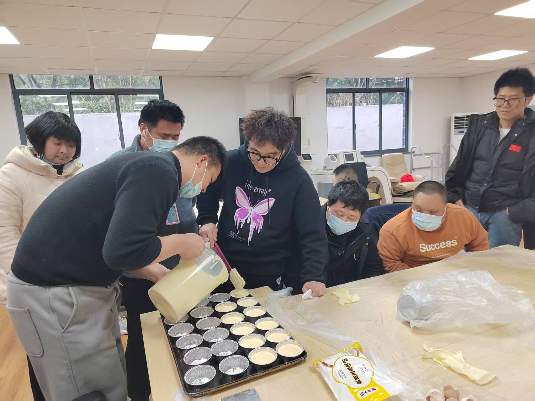 实操环节中,学员们热情高涨、专注投入,在老师和志愿者的耐心指导下,认真完成每一道工序。大家互相帮助鼓励,从精准称量、轻柔搅拌,到细心整理模具、把控烘烤时间,每一步都一丝不苟。随着烤箱升温,浓郁的芝士奶香弥漫开来,一块块色泽均匀、口感绵密的蛋糕新鲜出炉,学员们脸上洋溢着满满的成就感,纷纷分享自己的劳动成果,现场温馨而热烈。