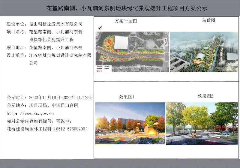 花望路南侧、小瓦浦河东侧地块绿化景观提升工程项目方案公示