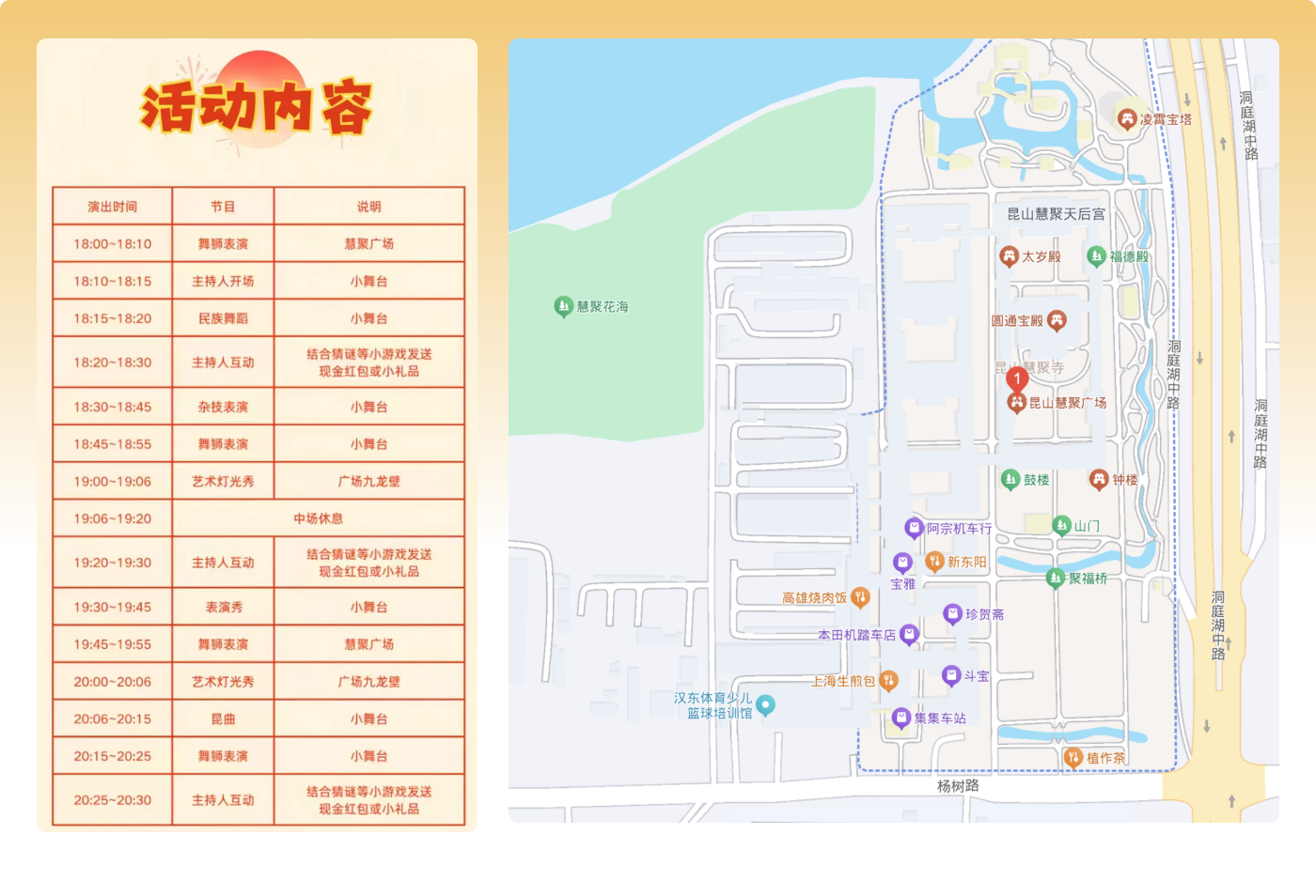 古韵雅集 · 好戏轮番上演。不止有热闹氛围,更有古韵绵长。婉转的昆曲、精彩的杂技表演、柔美的民族舞蹈依次登台,传统韵味与唯美演绎相融。一步一景,一眼一韵,尽是中式雅致!