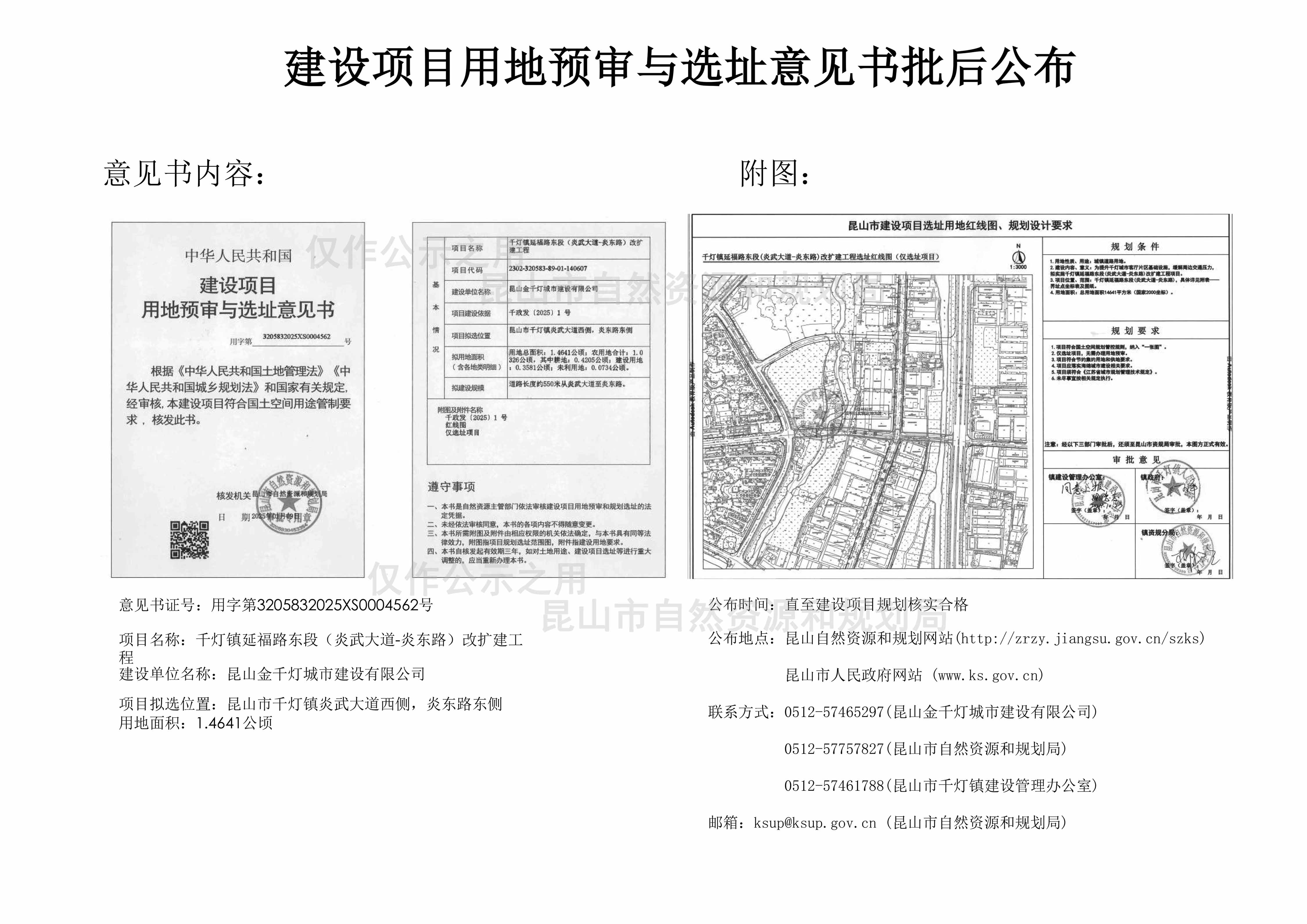 千灯镇延福路东段(炎武大道-炎东路)改扩建工程建设项目用地预审与选址意见批后公布