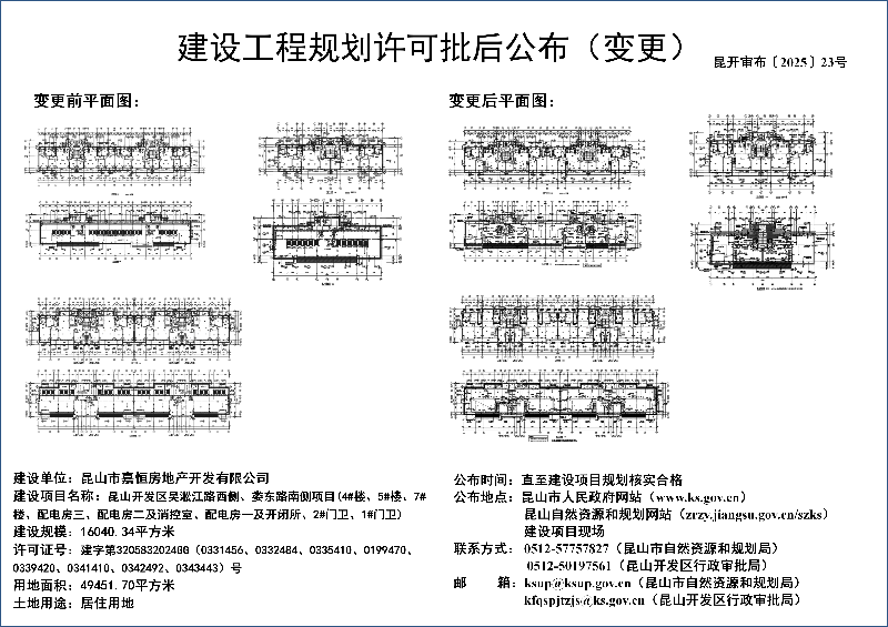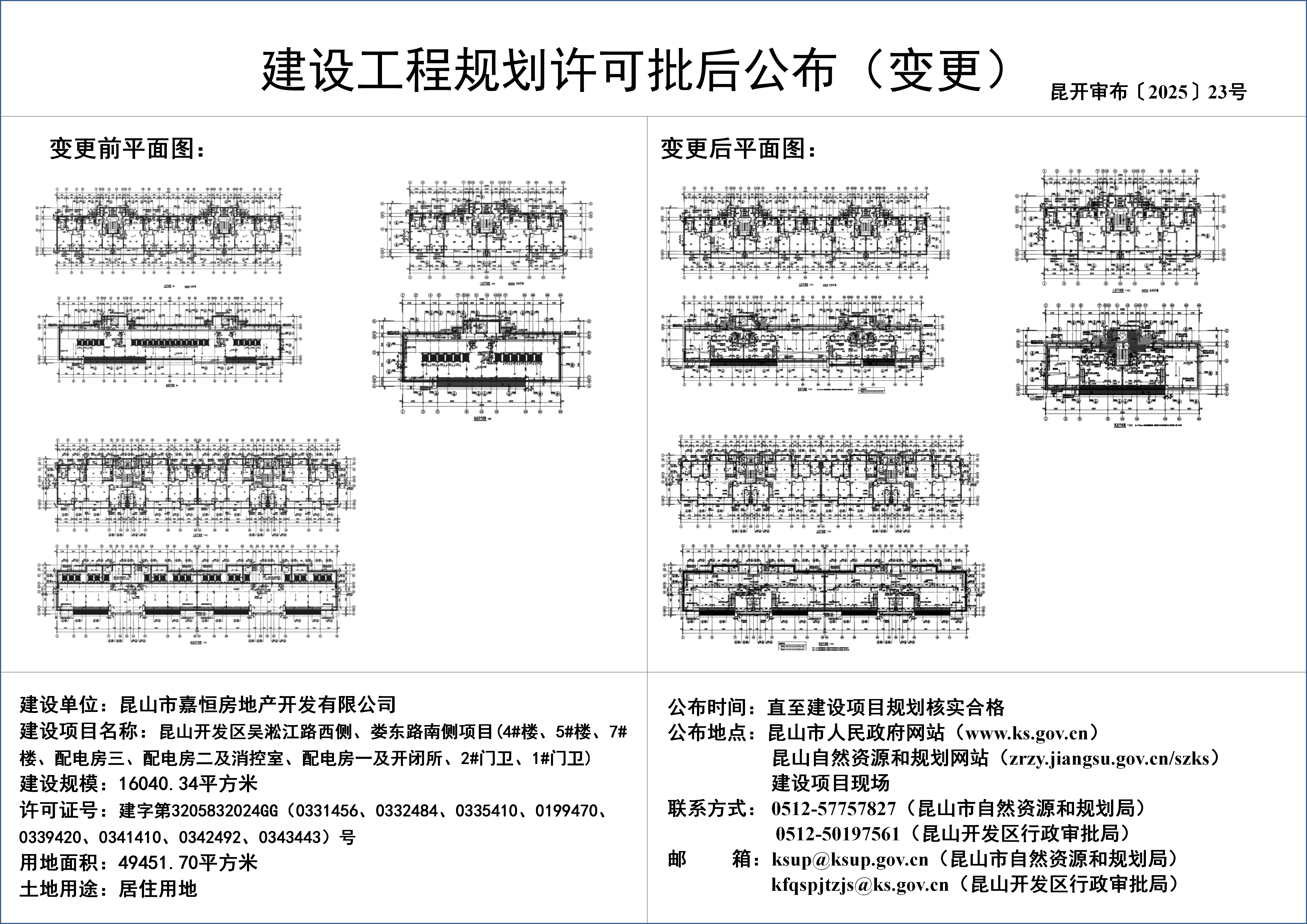 昆山市嘉恒房地产开发有限公司娄东路南侧、吴淞江路西侧居住地块项目4#楼、5#楼、7#楼、配电房三、配电房二及消控室、配电房一及开闭所、2#门卫、1#门卫建设工程规划许可(变更)批后公布