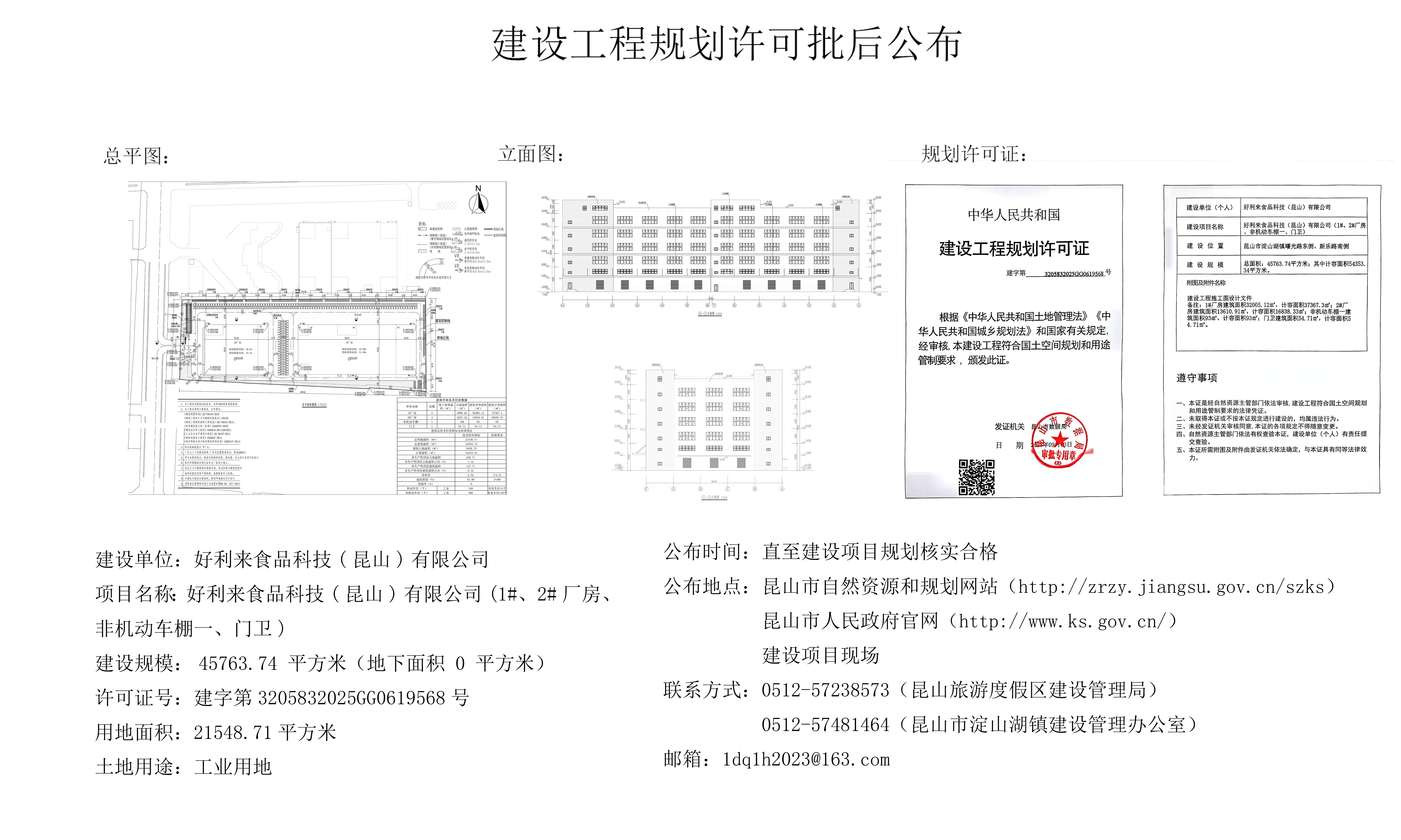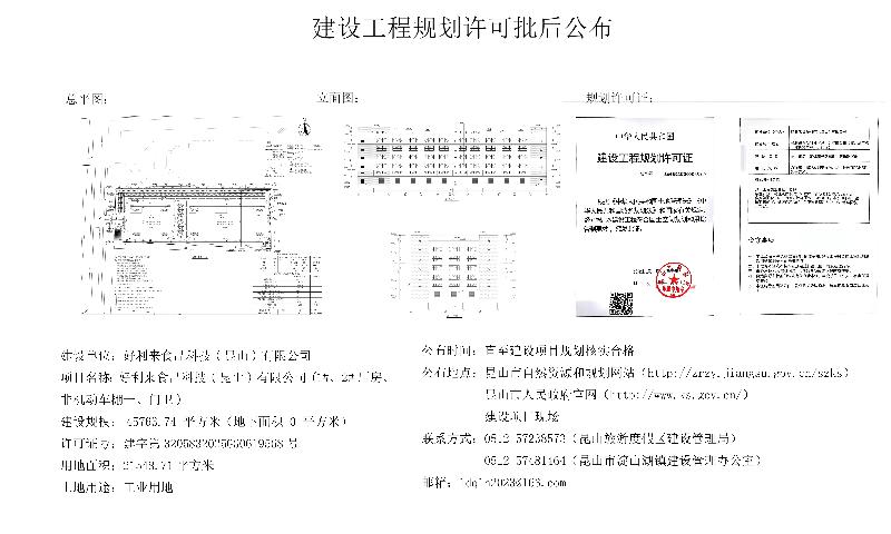 好利来食品科技(昆山)有限公司糕点生产项目批后公布