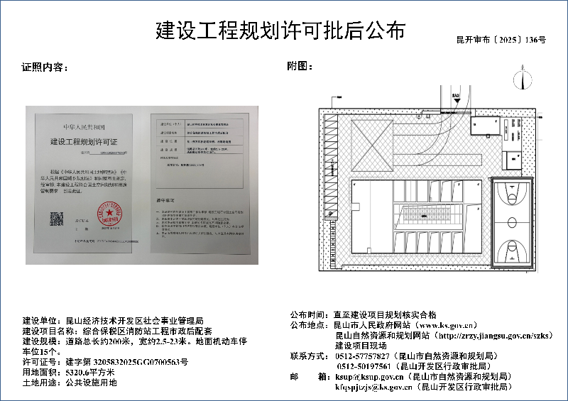 昆山经济技术开发区社会事业管理局综合保税区消防站工程市政后配套建设工程规划许可批后公布