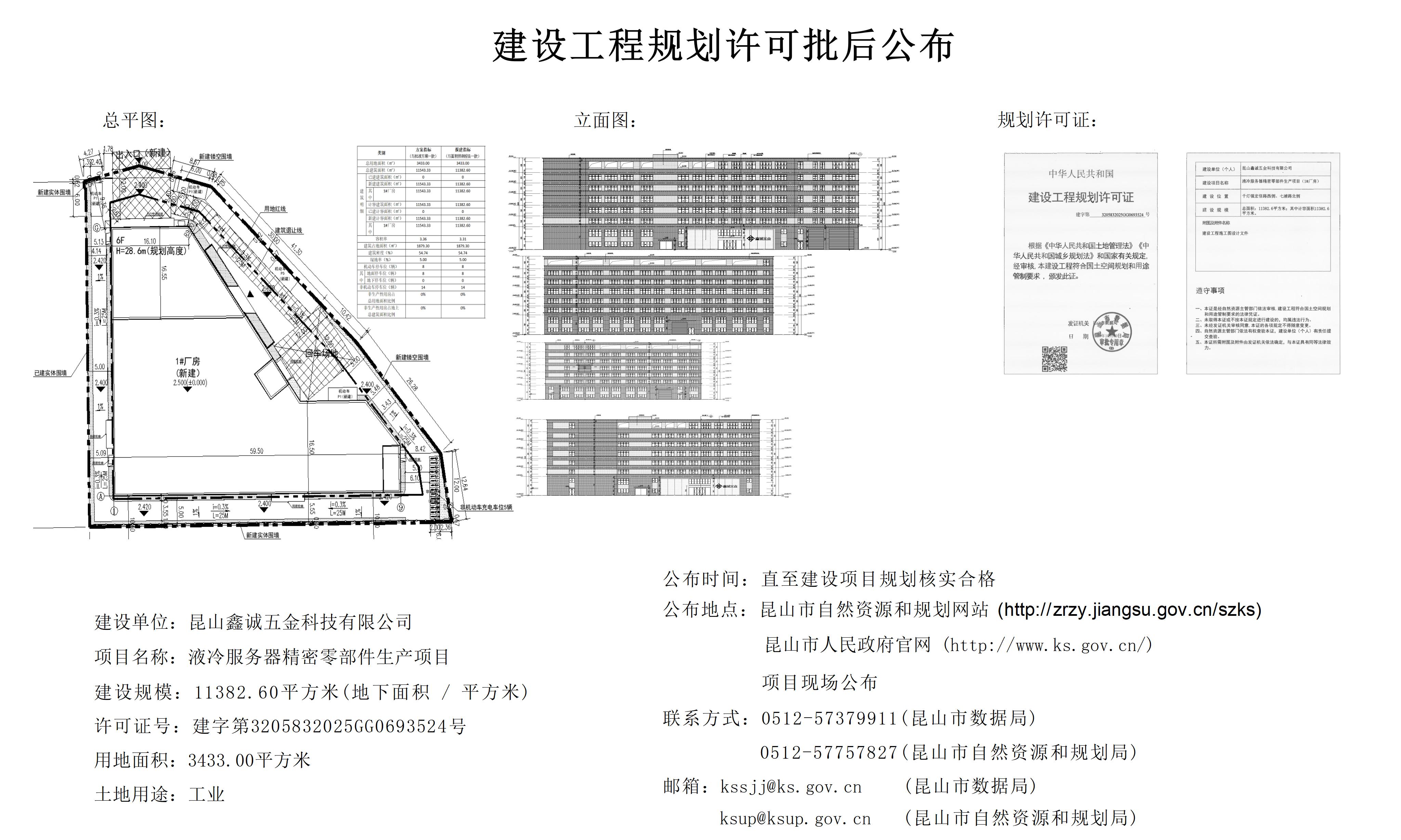 昆山鑫诚五金科技有限公司1#厂房批后公布牌
