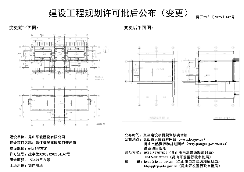昆山华敏建设有限公司珠江御景花园项目开闭所建设工程规划许可批后公布(变更)