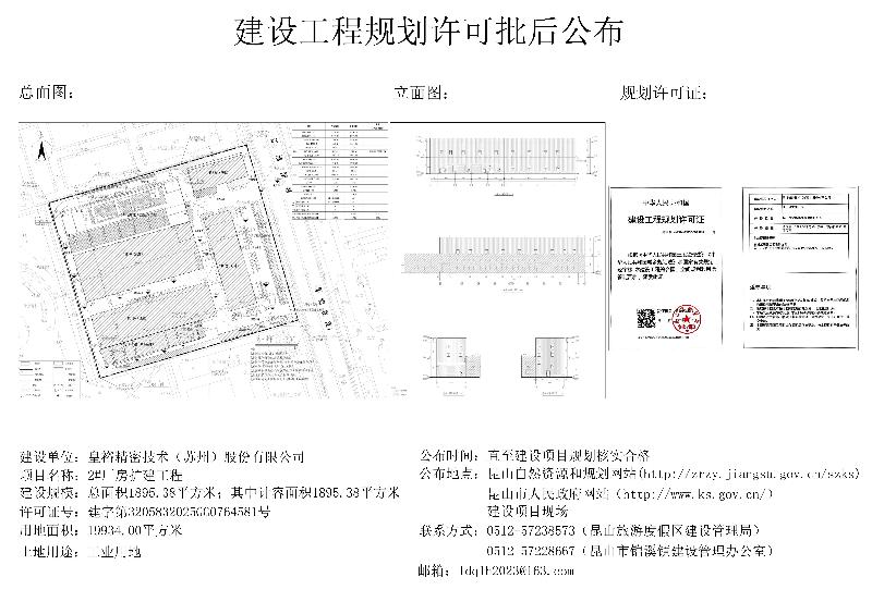皇裕精密技术(苏州)有限公司电子元件及汽车零部件生产项目批后公布