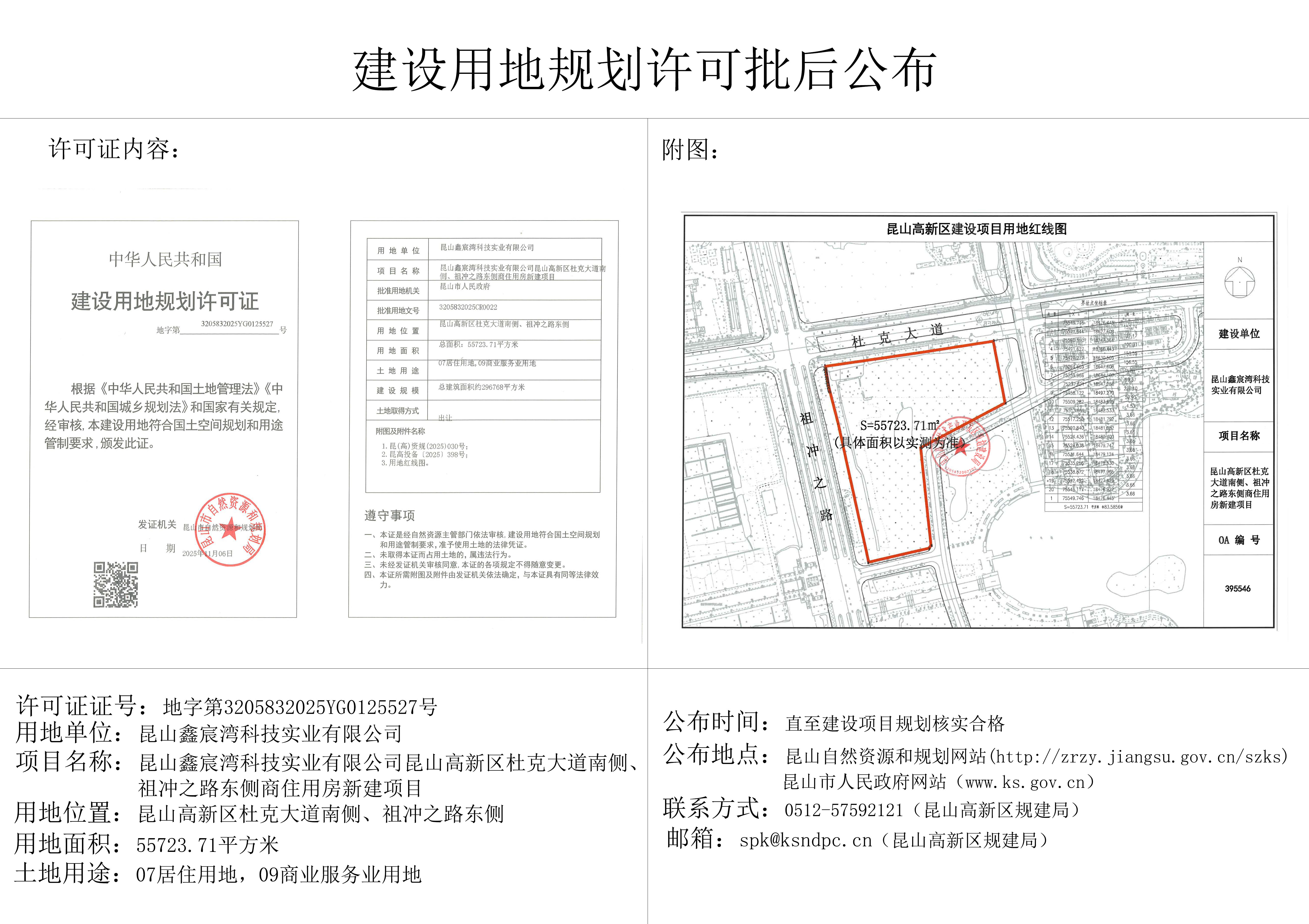 昆山鑫宸湾科技实业有限公司昆山高新区杜克大道南侧、祖冲之路东侧商住用房新建项目