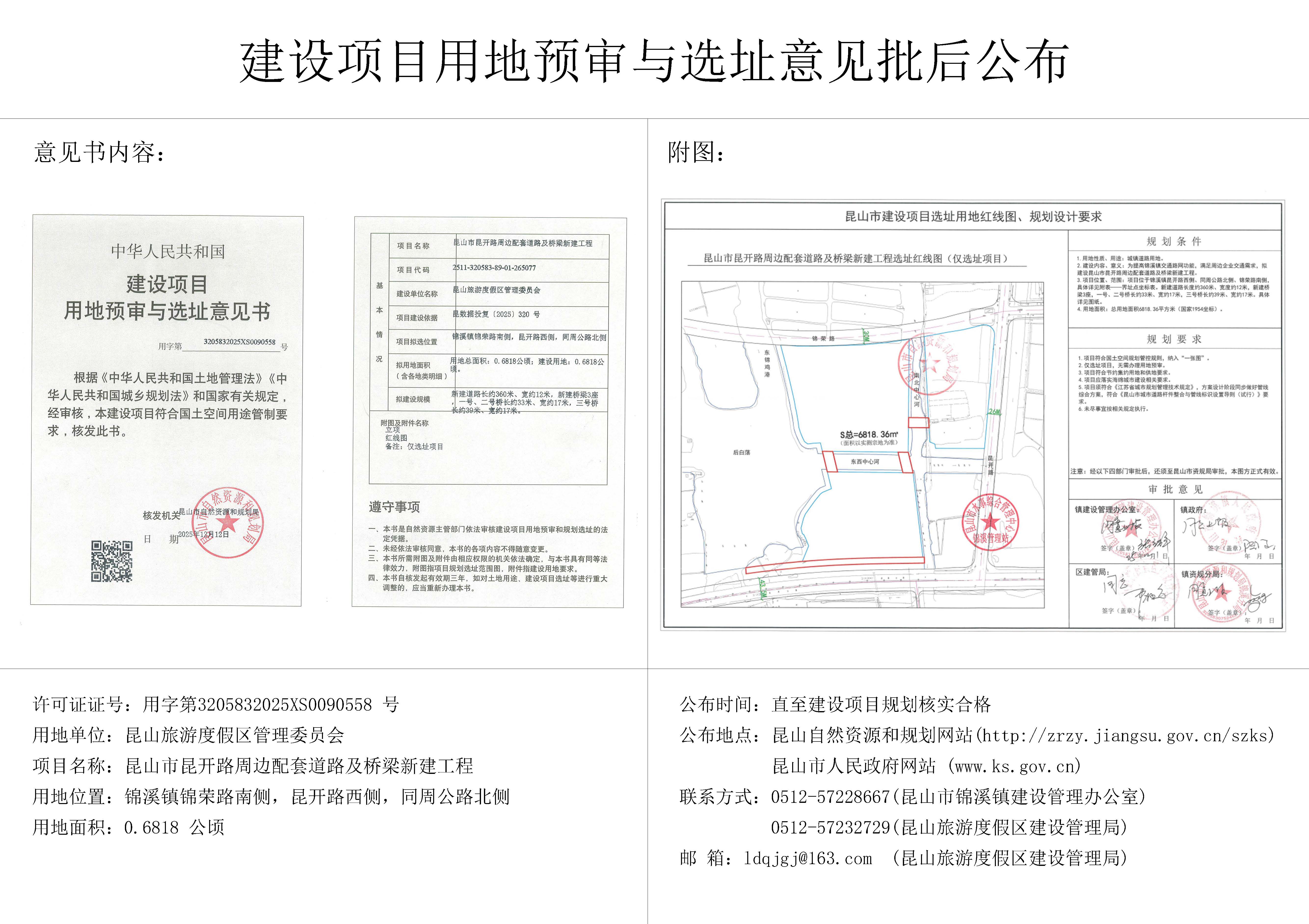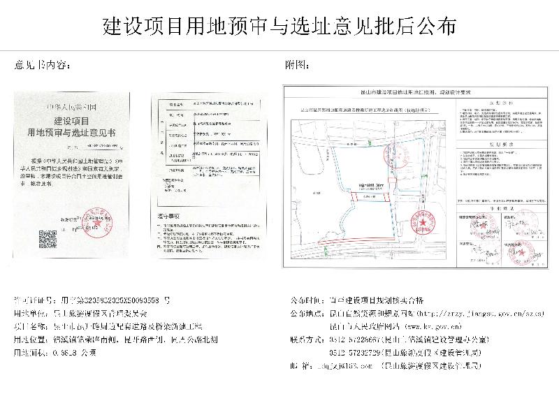 昆山市昆开路周边配套道路及桥梁新建工程建设项目用地预审与选址意见批后公布