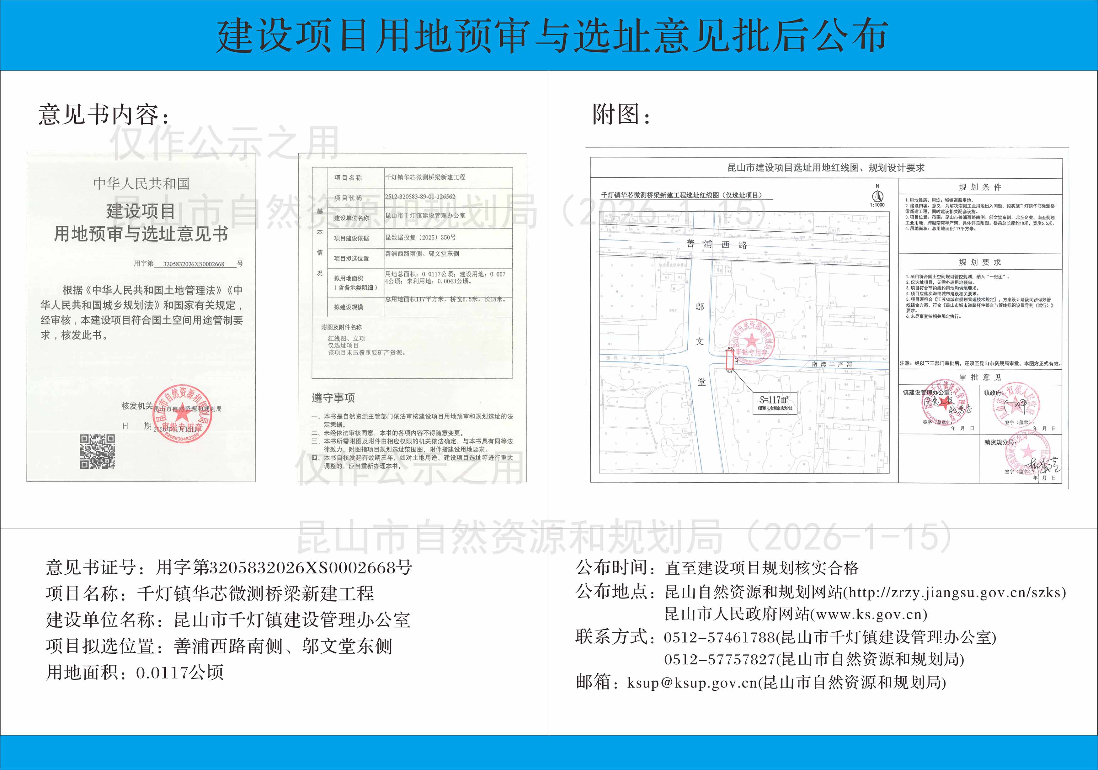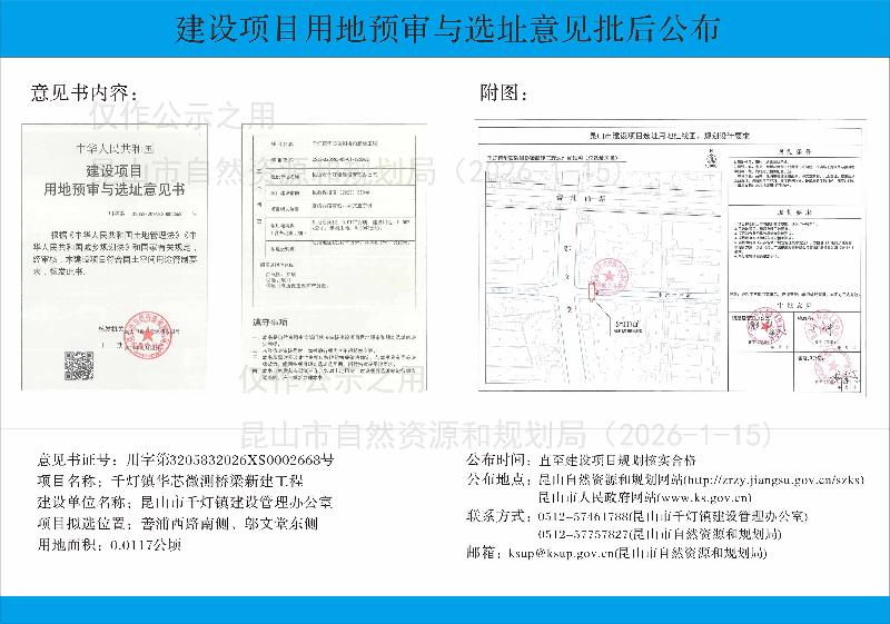 千灯镇华芯微测桥梁新建工程建设项目用地预审与选址意见批后公布