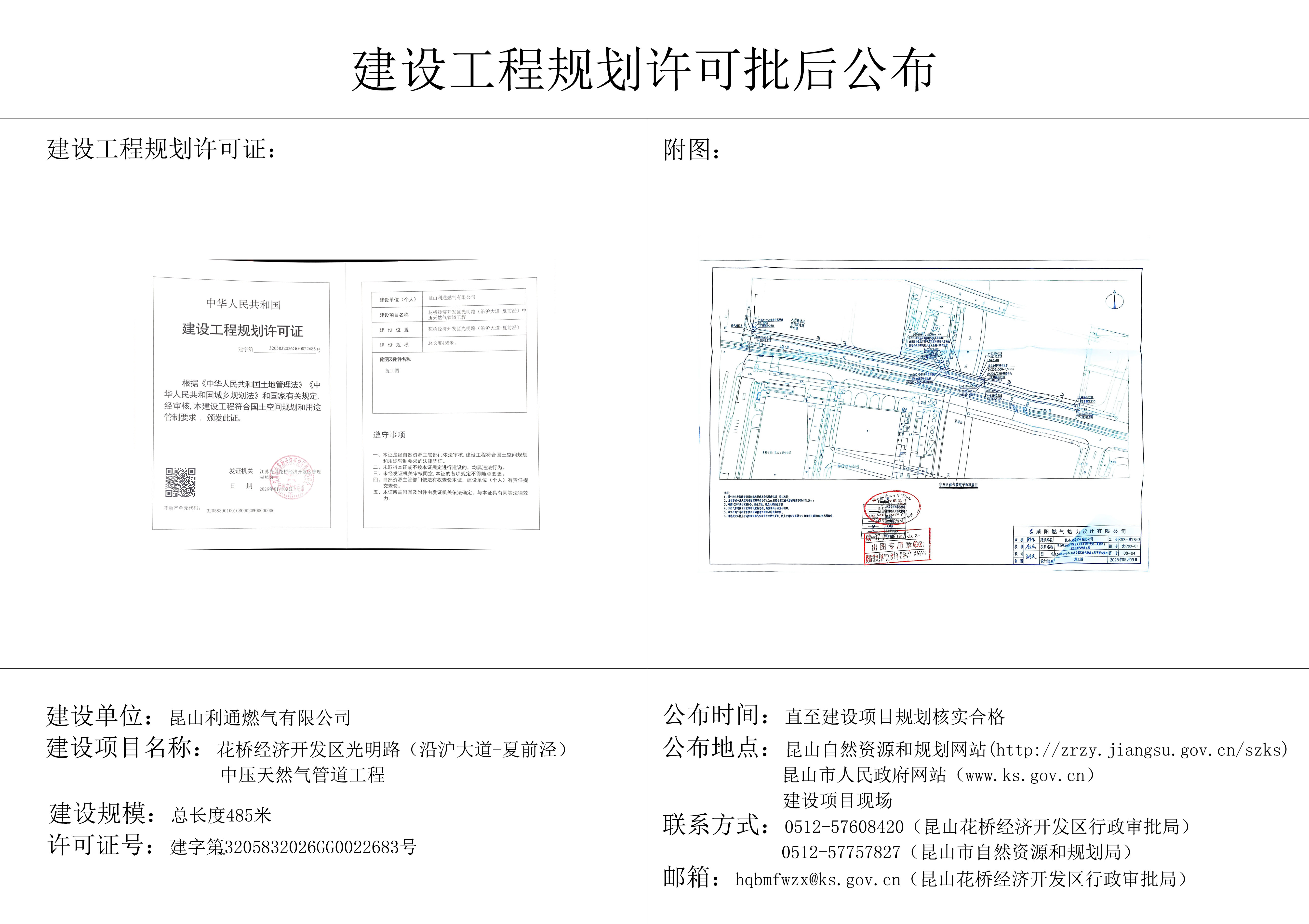 昆山利通燃气光明路中压管建设工程规划许可证批后公布