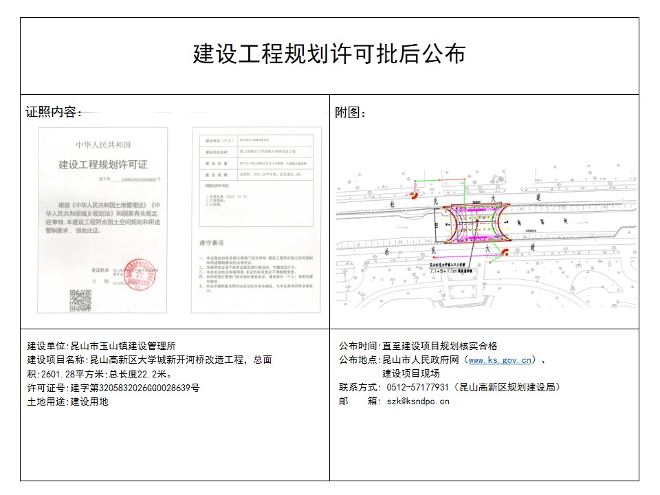 昆山高新区大学城新开河桥改造工程建设工程规划许可
