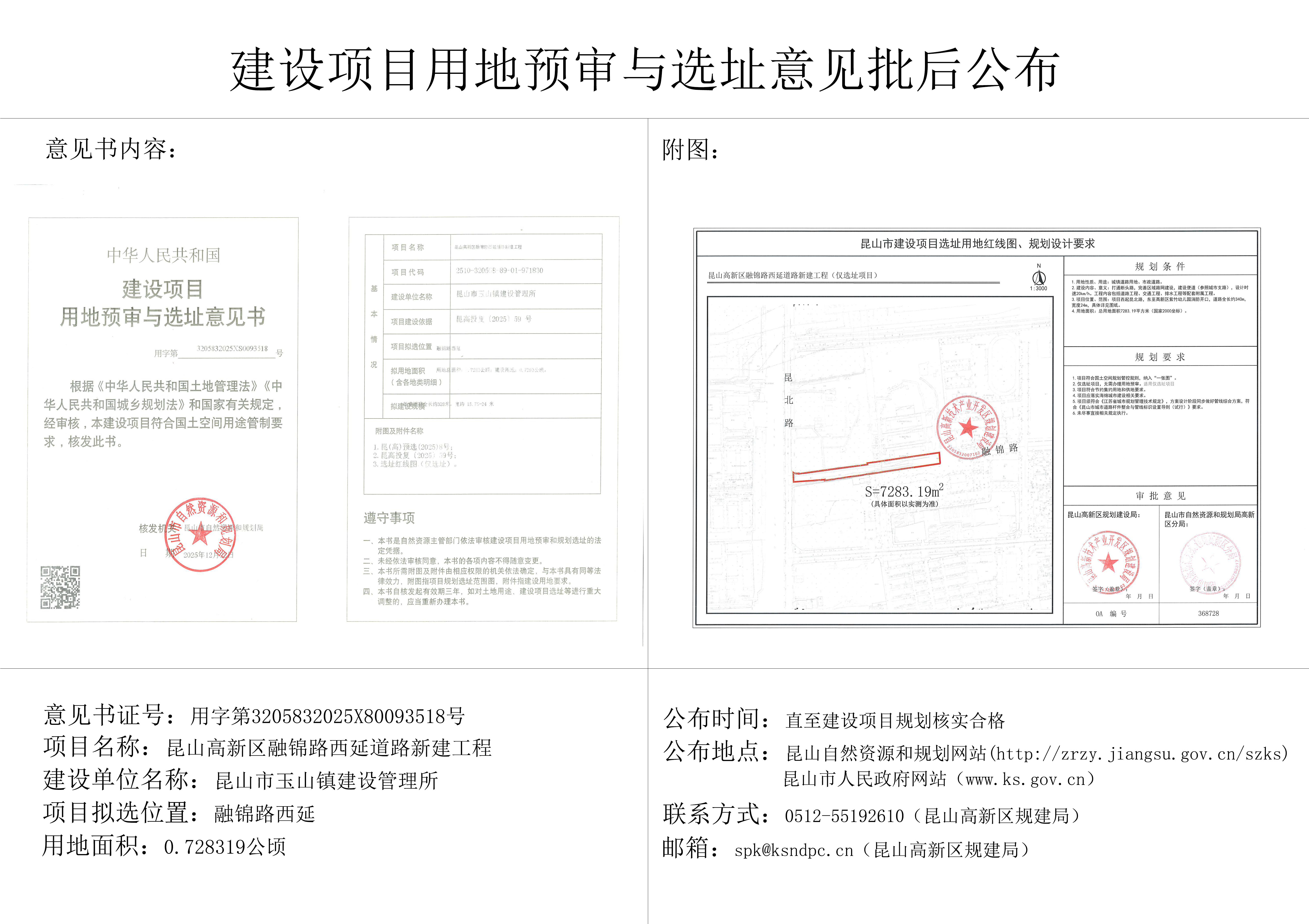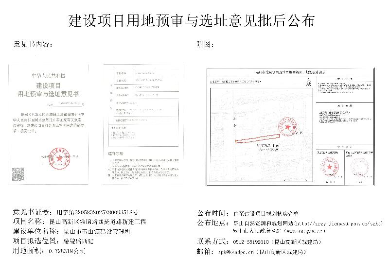 昆山高新区融锦路西延道路新建工程建设项目用地预审与选址意见