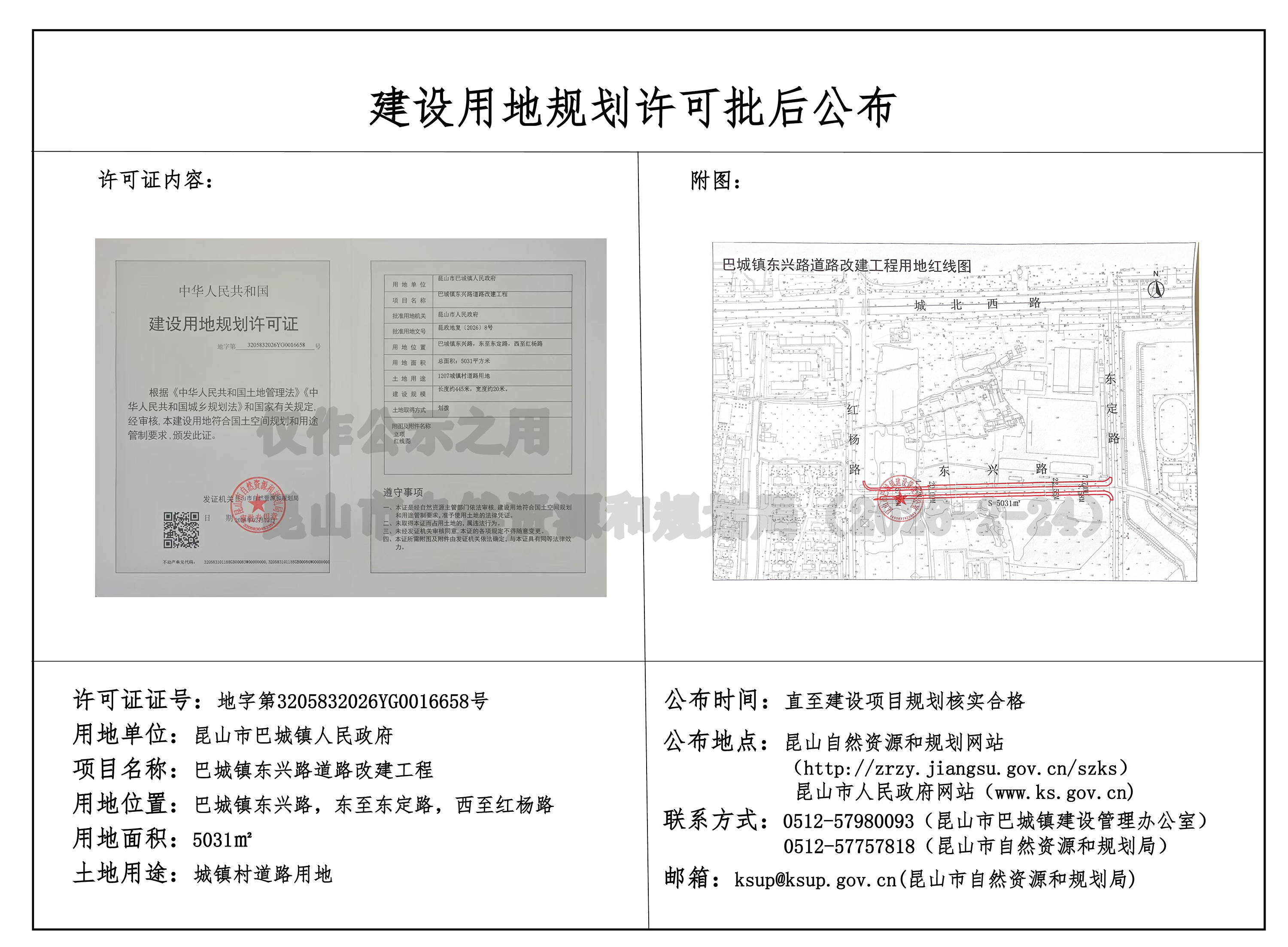 巴城镇东兴路道路改建工程建设用地规划许可批后公布