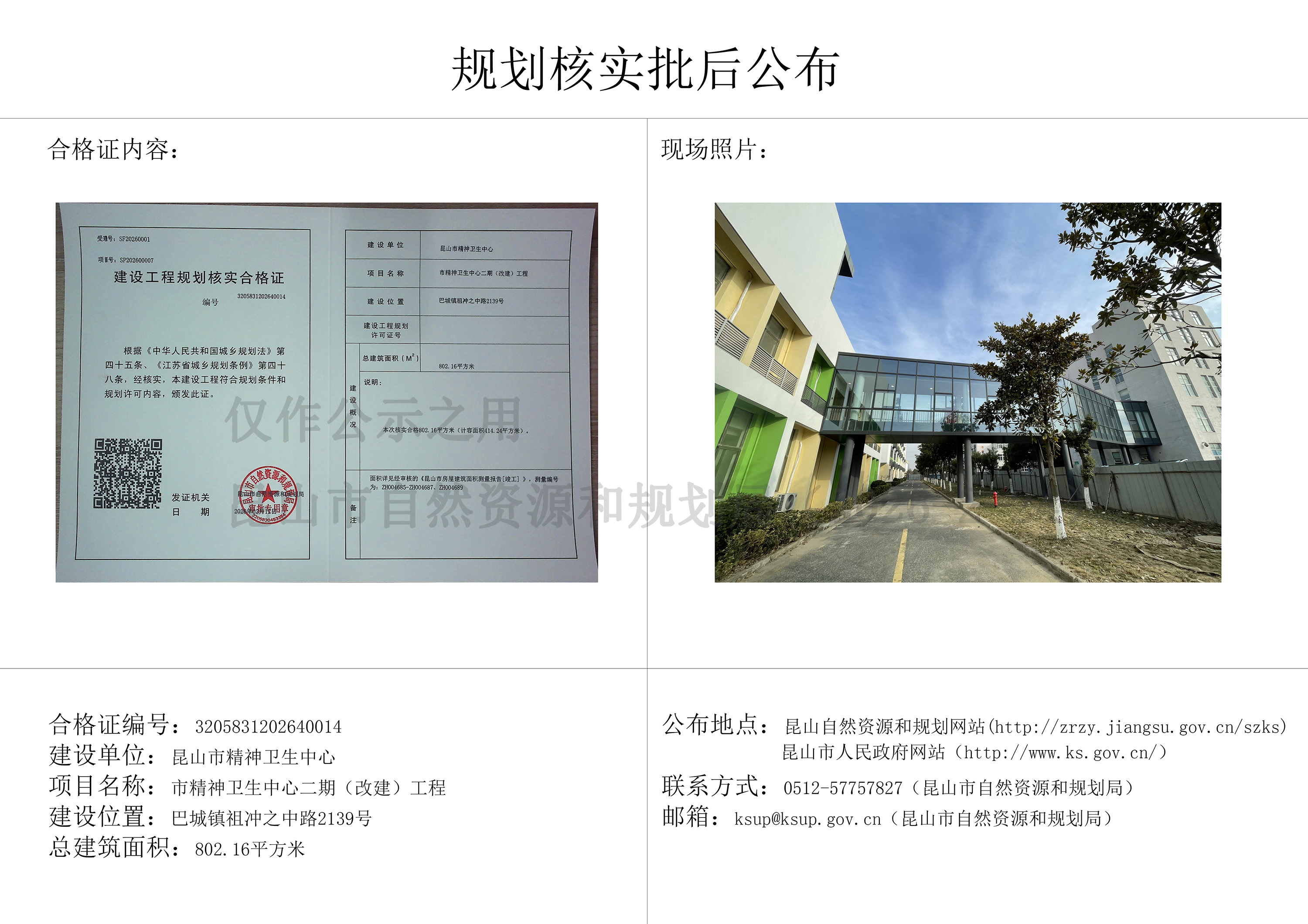 市精神卫生中心二期(改建)工程规划核实批后公布