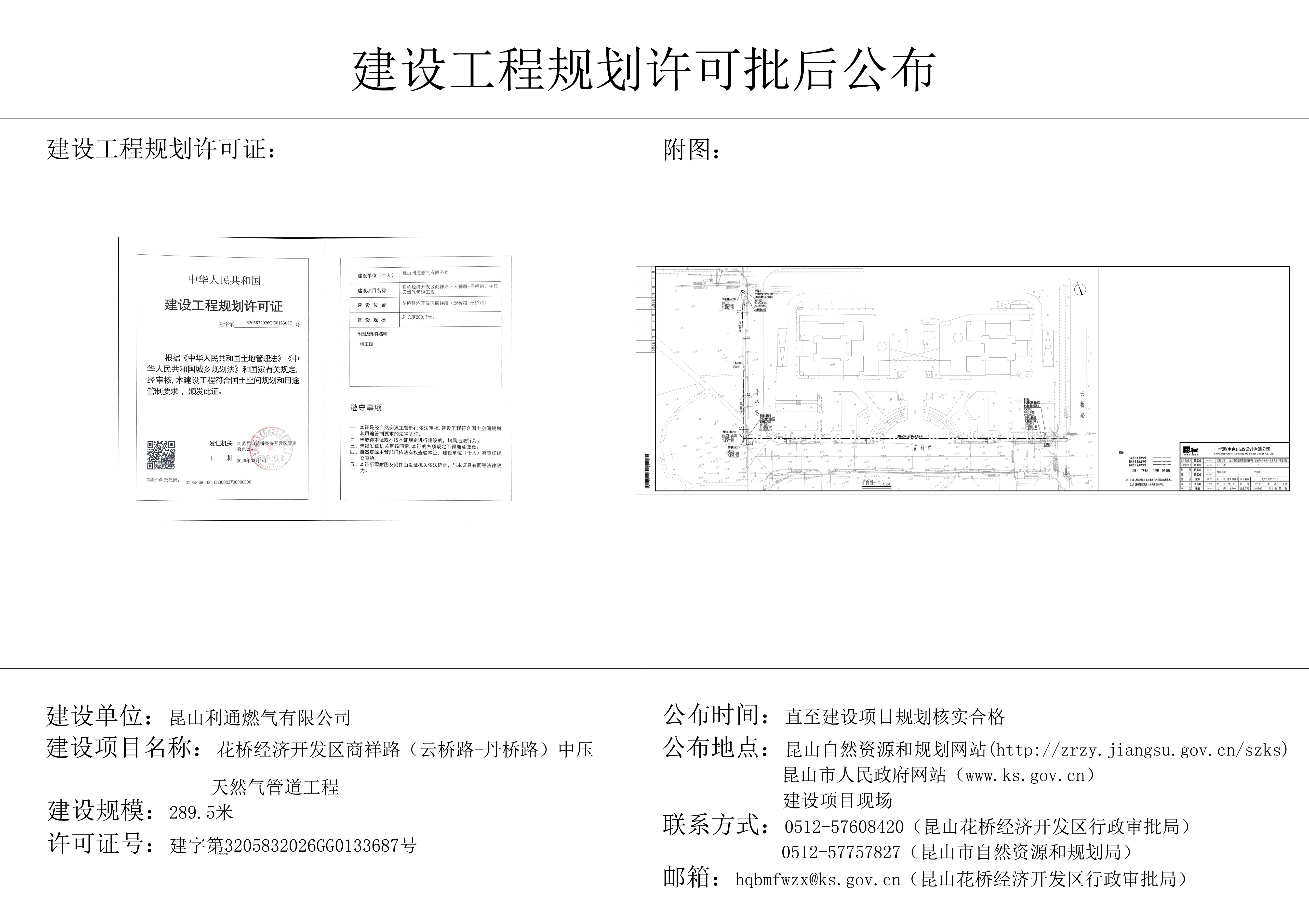 利通商祥路(云桥路-丹桥路)中压天然气管道工程建设工程规划许可证批后公布