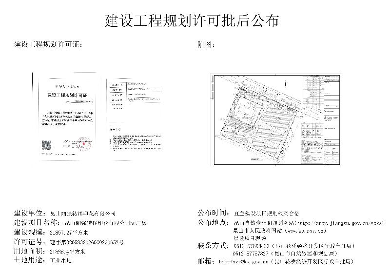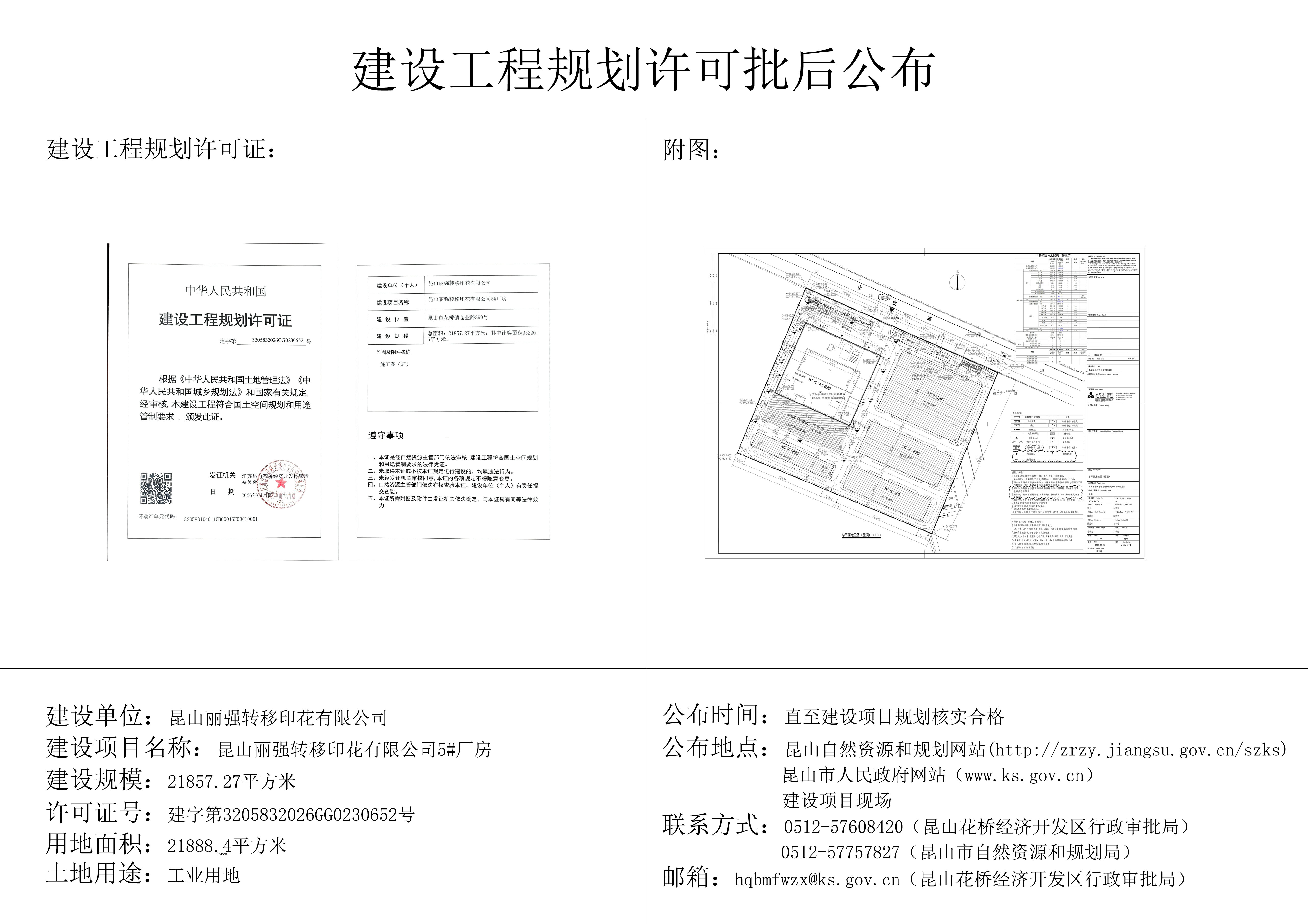 丽强转移印花5#厂房建设工程规划许可证批后公布