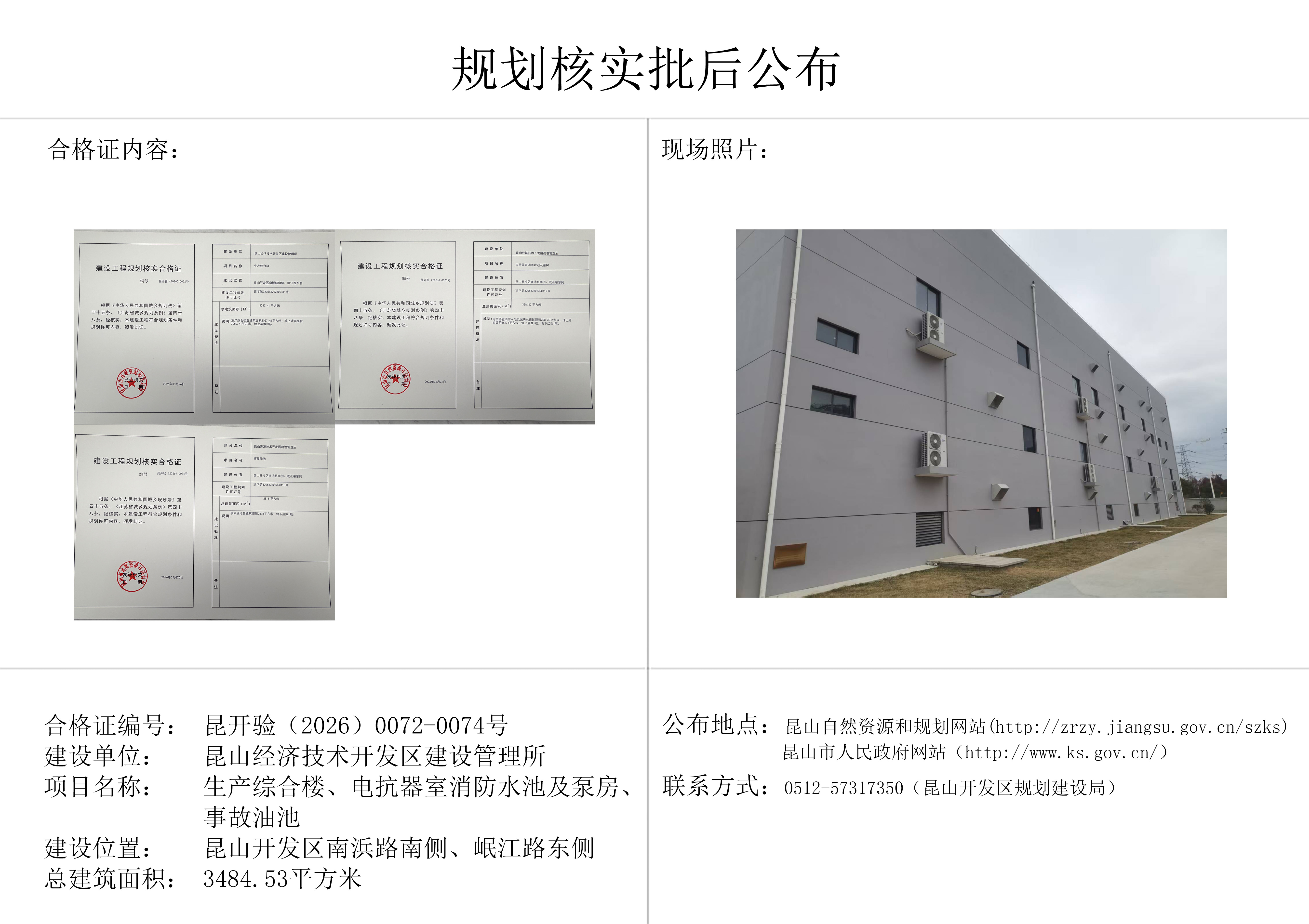 昆山经济技术开发区建设管理所-生产综合楼、电抗器室消防水池及泵房、事故油池