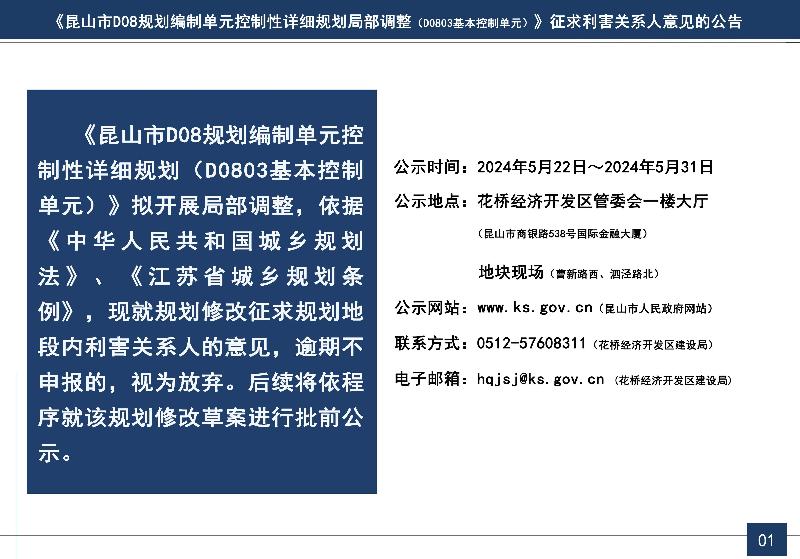 附件:《昆山市D08规划编制单元控制性详细规划局部调整(D0803基本控制单元)》征求利害关系人意见的公告1