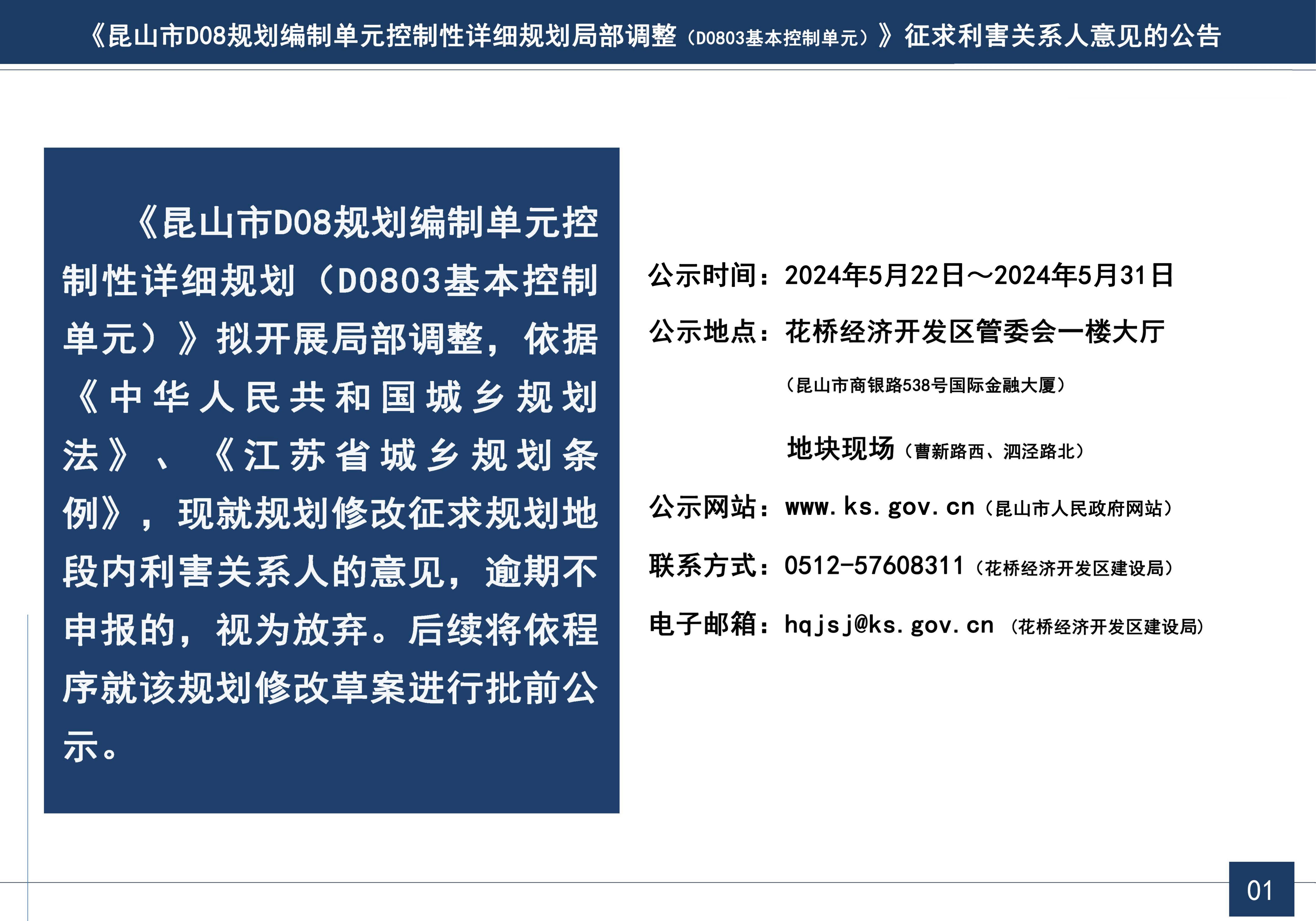 附件:《昆山市D08规划编制单元控制性详细规划局部调整(D0803基本控制单元)》征求利害关系人意见的公告2