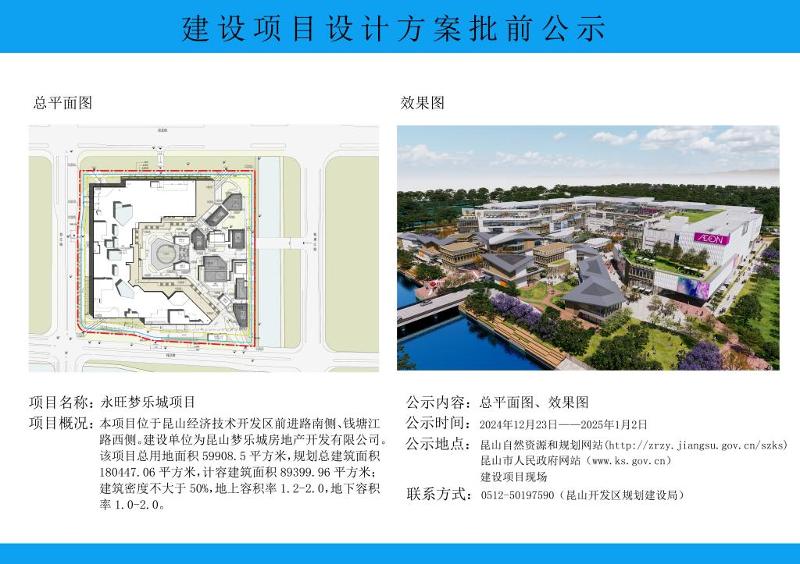 昆山开发区规划建设局关于永旺梦乐城项目的批前公示