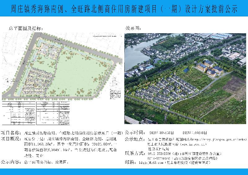 周庄镇秀海路南侧、全旺路北侧商住用房新建项目(一期)设计方案批前公示