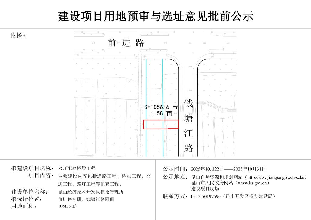昆山开发区规划建设局关于永旺配套桥梁工程项目选址的批前公示