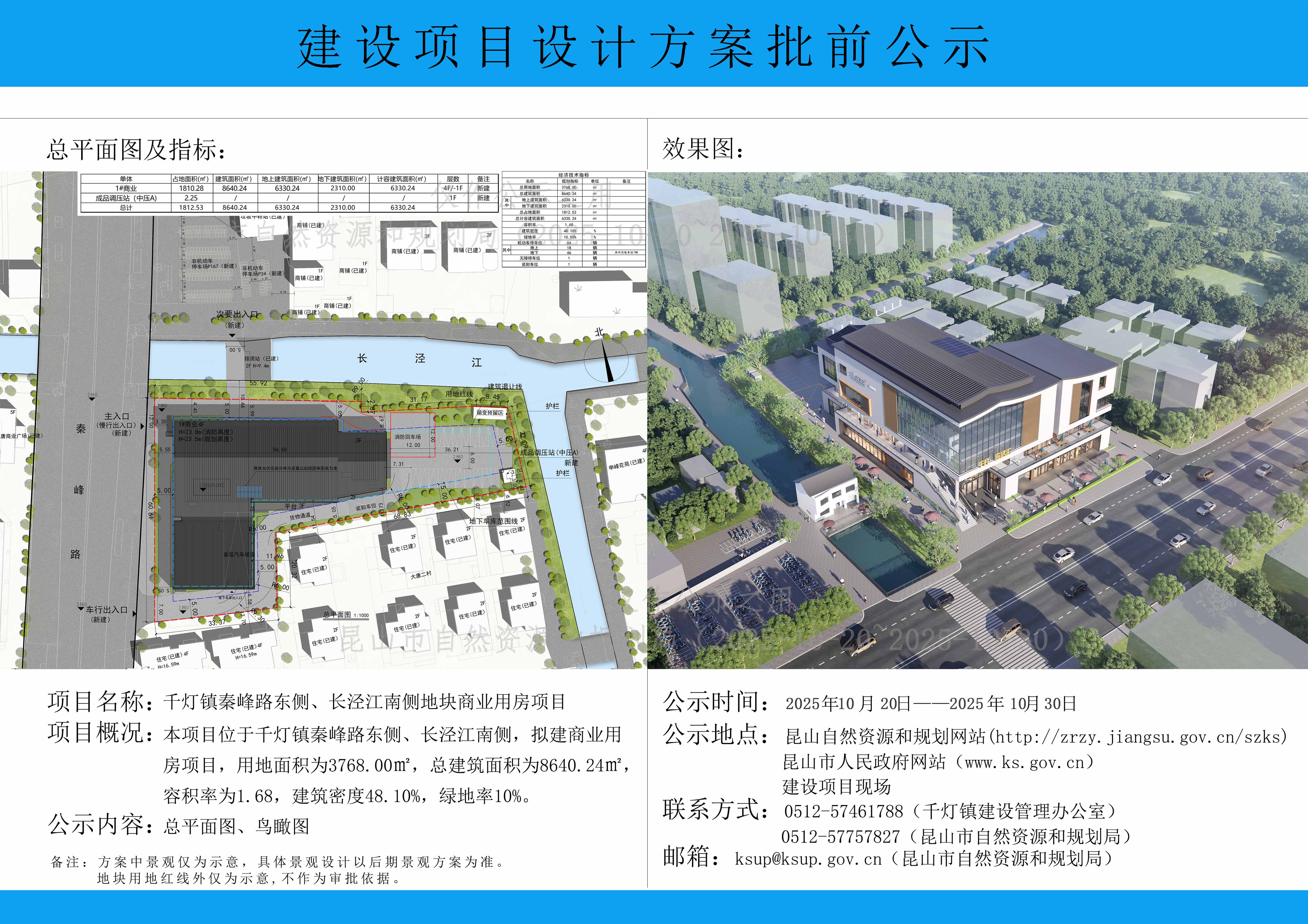 千灯镇秦峰路东侧、长泾江南侧地块商业用房项目设计方案批前公示
