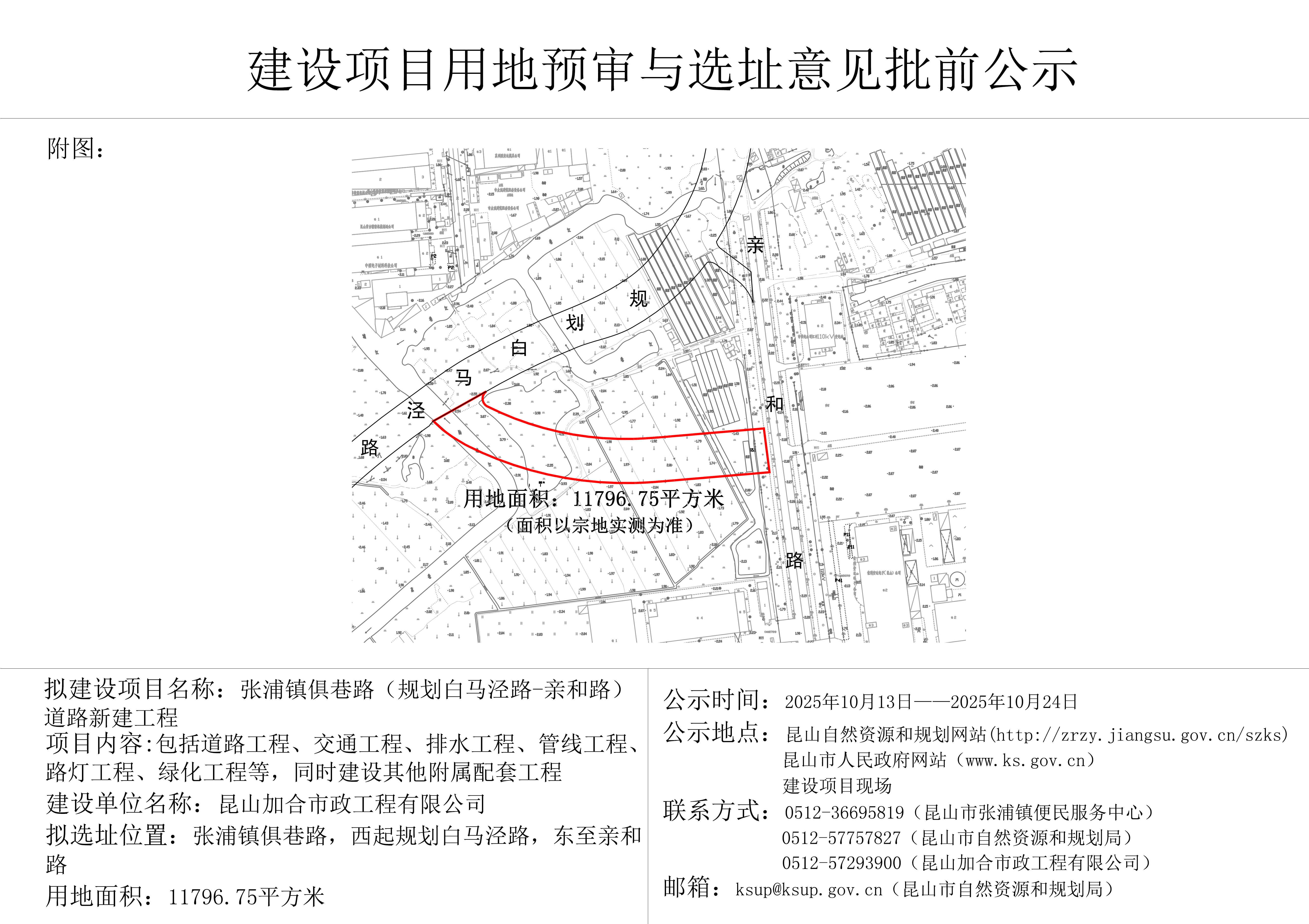 张浦镇俱巷路(规划白马泾路-亲和路)道路新建工程建设项目用地预审与选址意见批前公示