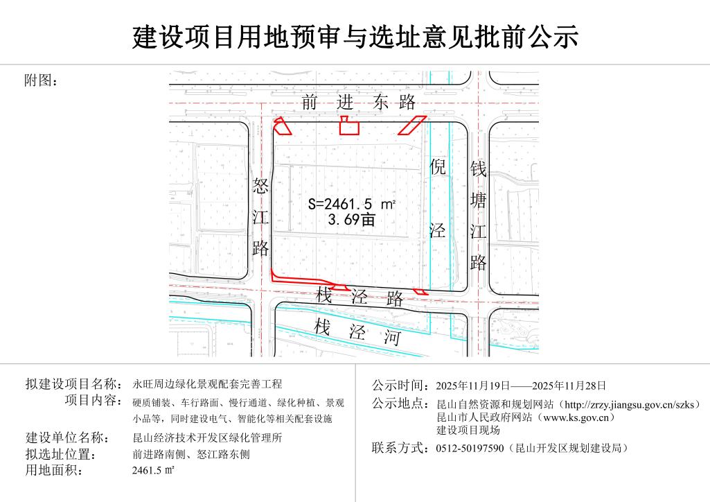 昆山开发区规划建设局关于永旺周边绿化景观配套完善工程项目选址的批前公示