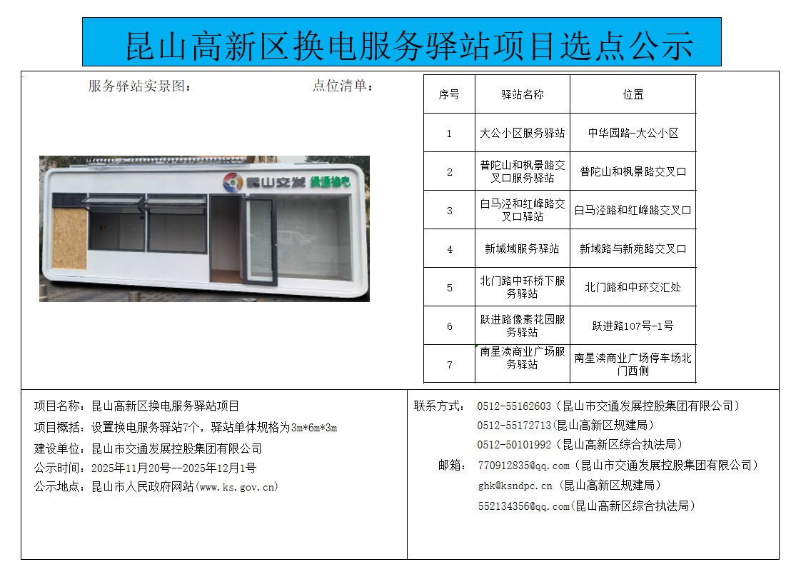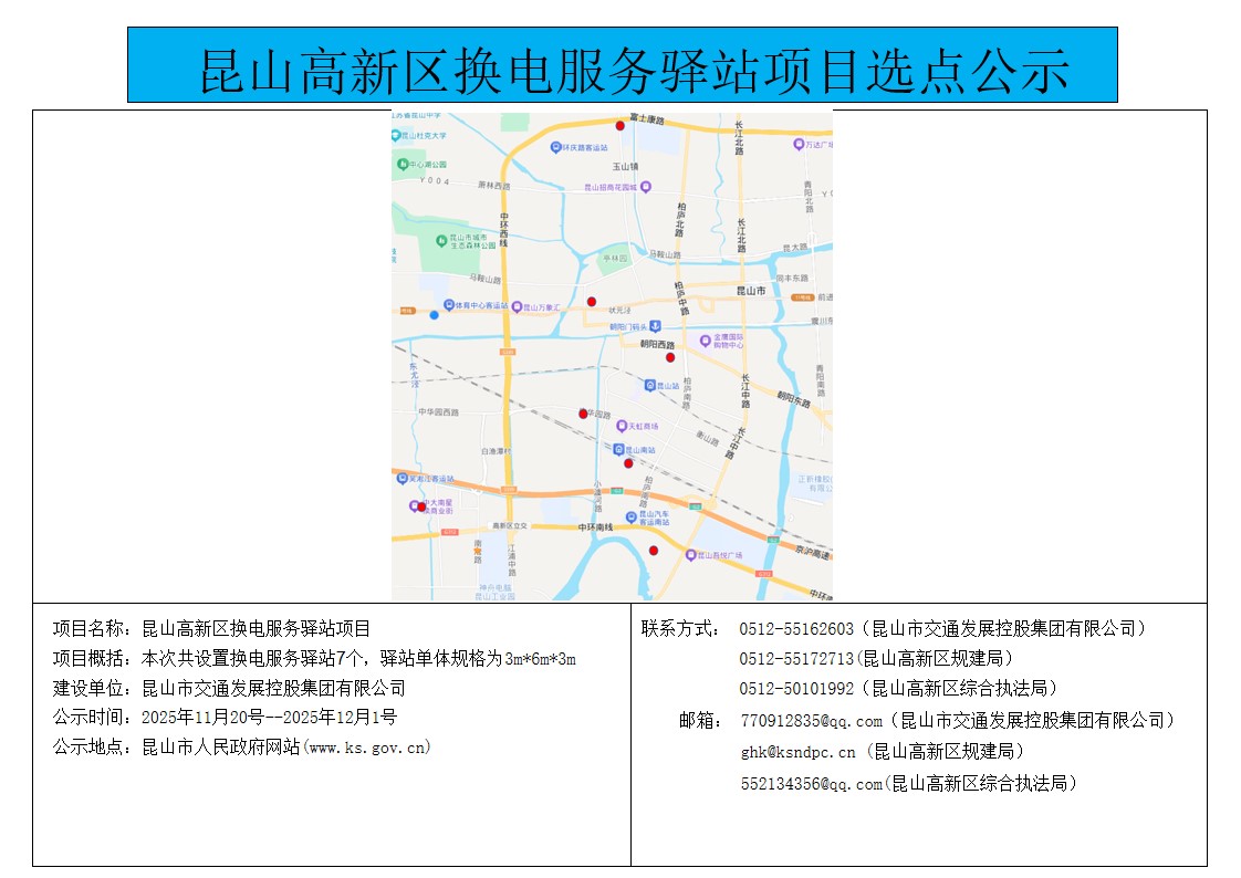 昆山高新区换电服务驿站项目选点公示2