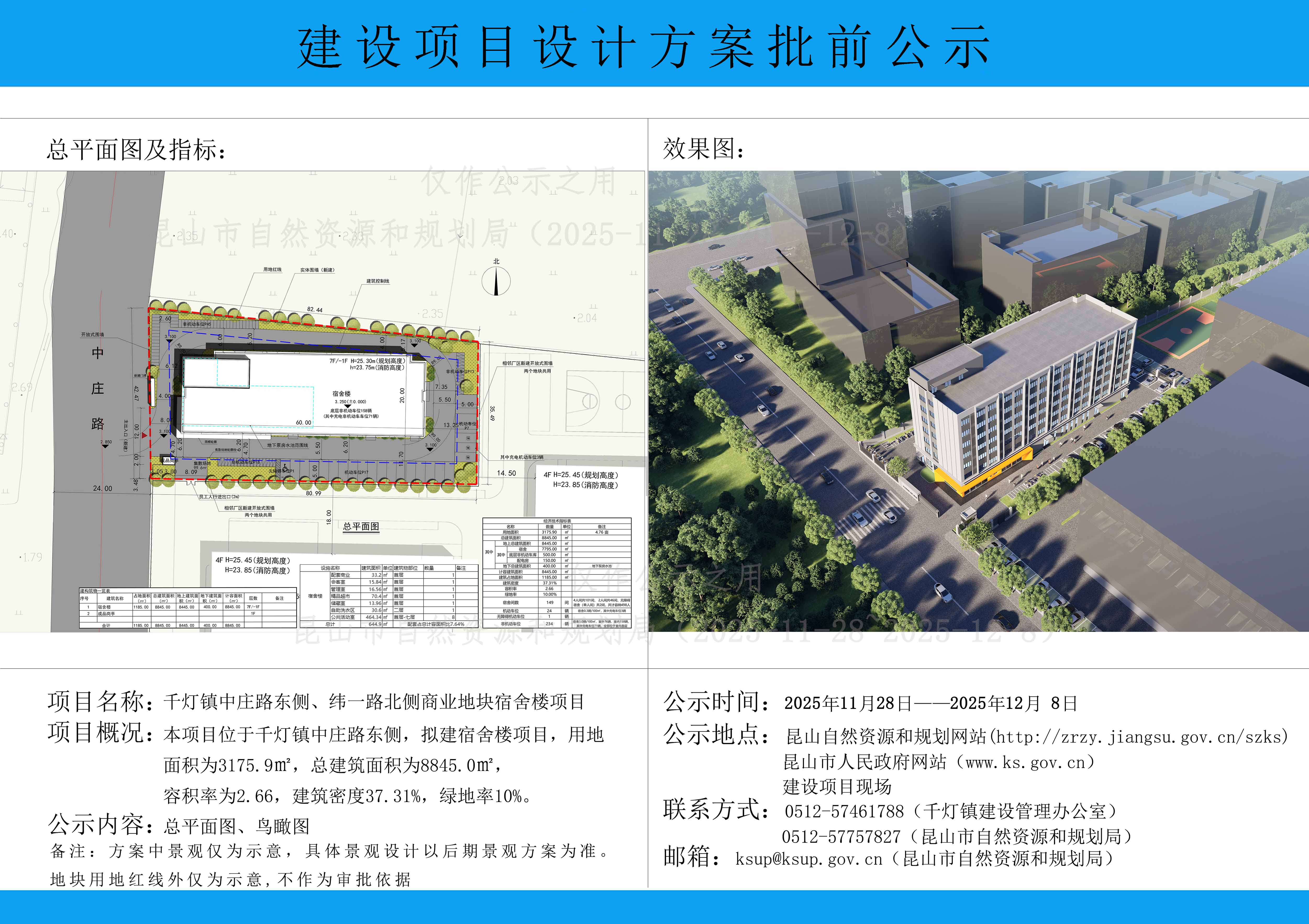 千灯镇中庄路东侧、纬一路北侧商业地块宿舍楼项目建设项目设计方案批前公示