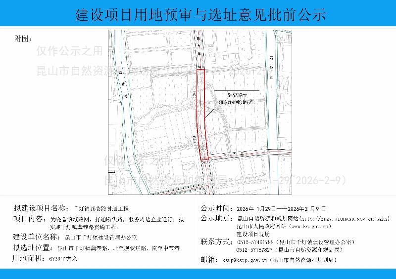 千灯镇龚巷路贯通工程建设项目用地预审与选址意见批前公示