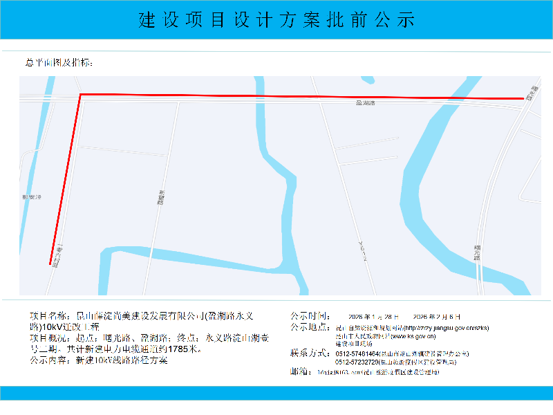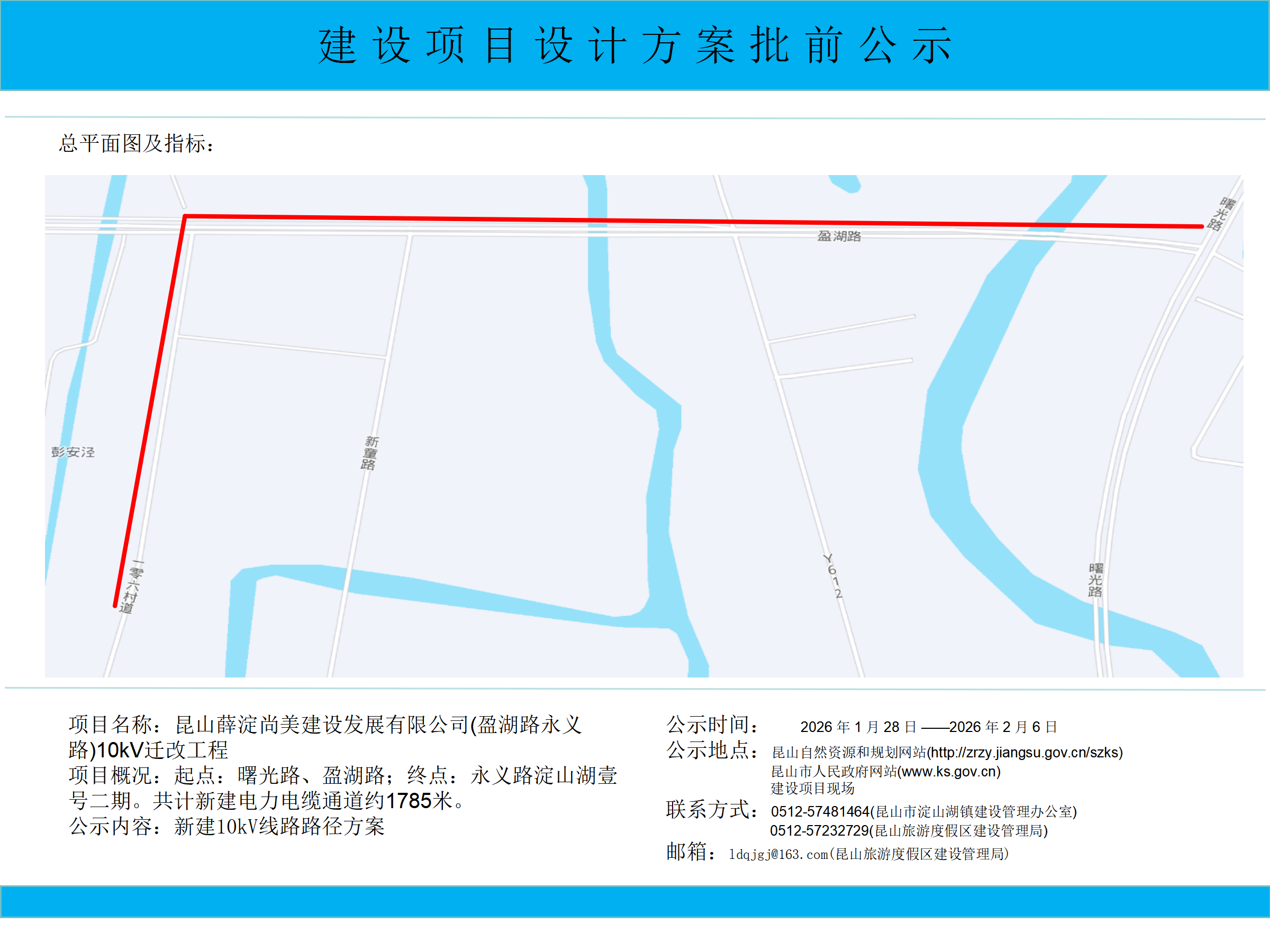 昆山薛淀尚美建设发展有限公司(盈湖路永义路)10kV迁改工程路径方案批前公示