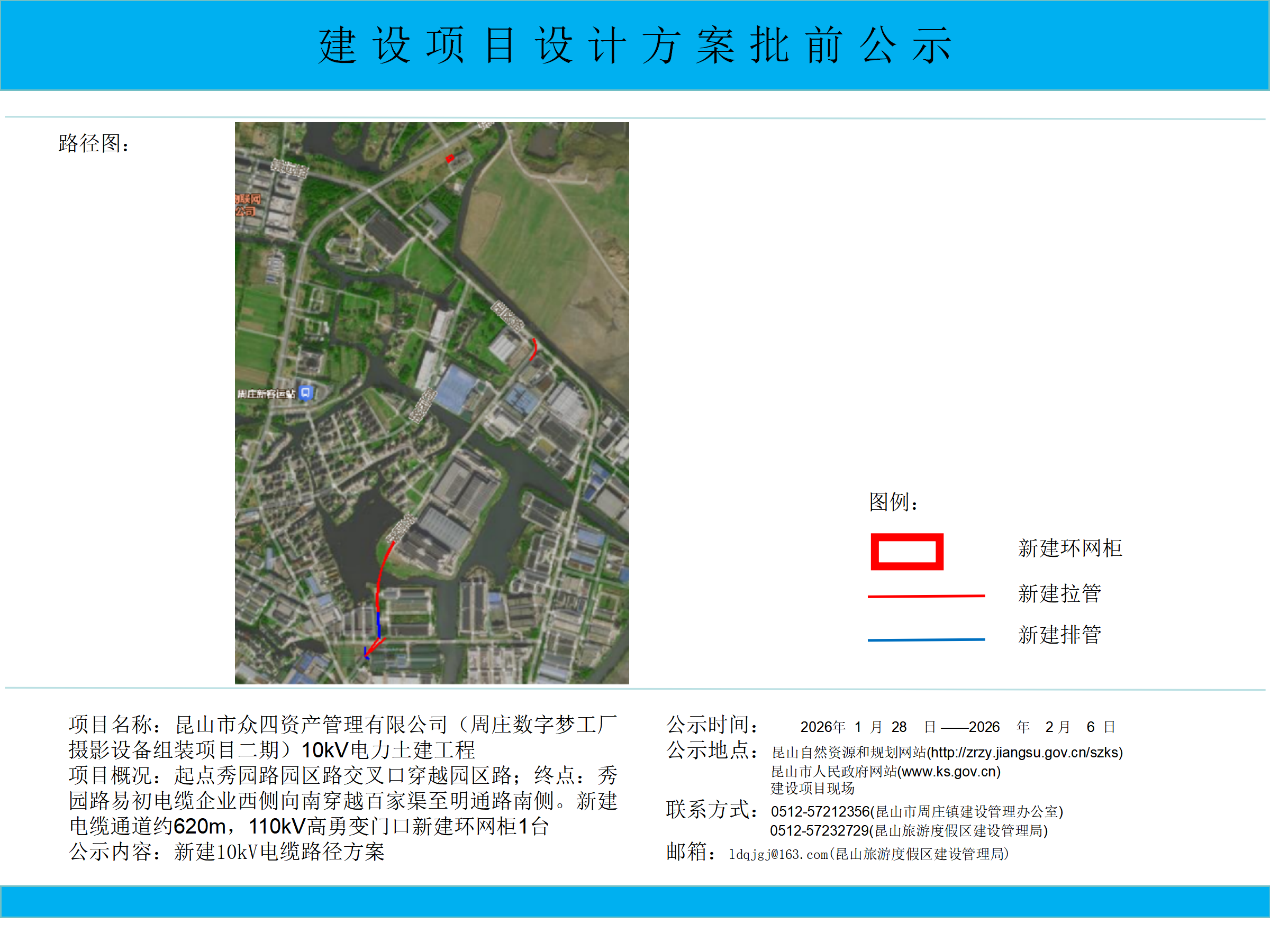 昆山市众四资产管理有限公司(周庄数字梦工厂摄影设备组装项目二期)10kV电力土建工程路径方案批前公示