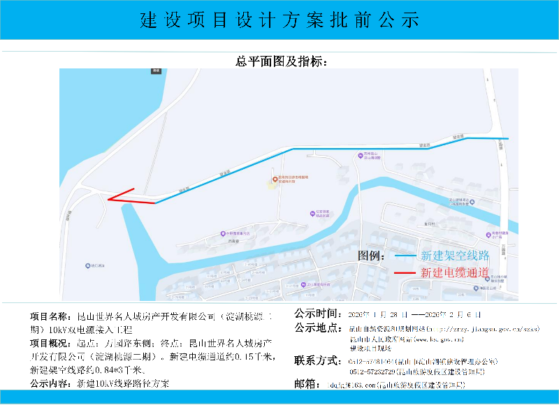 昆山世界名人城房产开发有限公司(淀湖桃源二期)10kV双电源接入工程路径方案批前公示