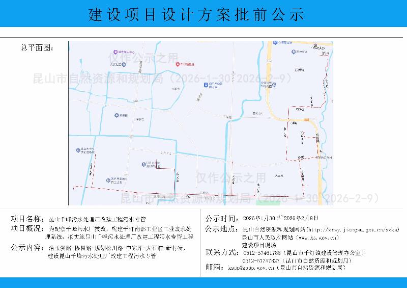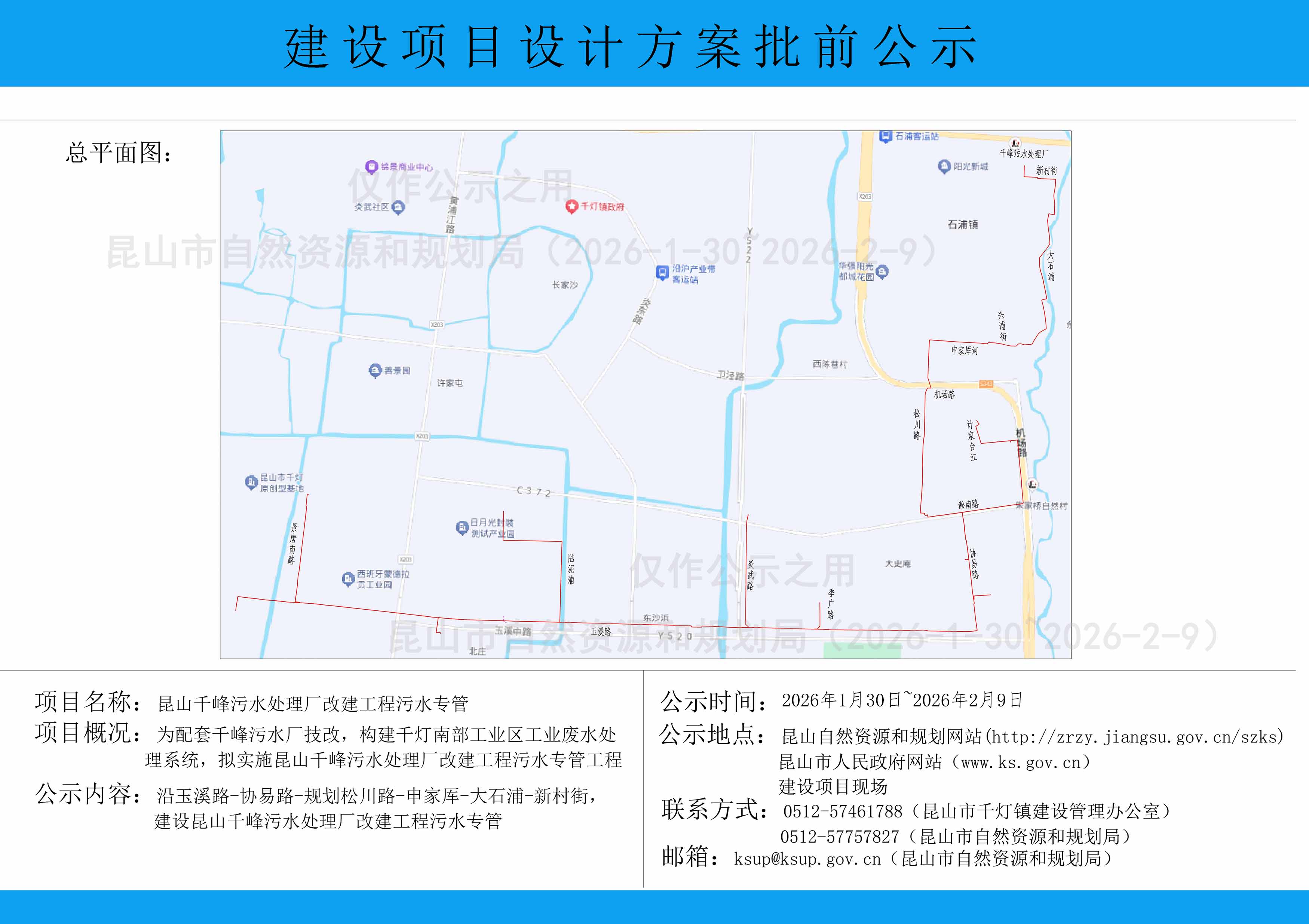 昆山千峰污水处理厂改建工程污水专管建设项目设计方案批前公示
