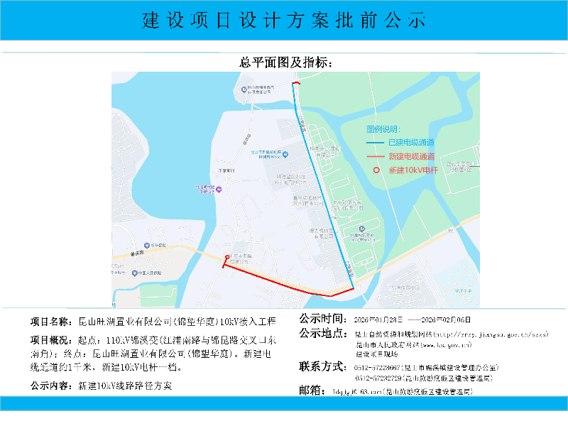 昆山旺湖置业有限公司(锦望华庭)10kV接入工程路径方案批前公示