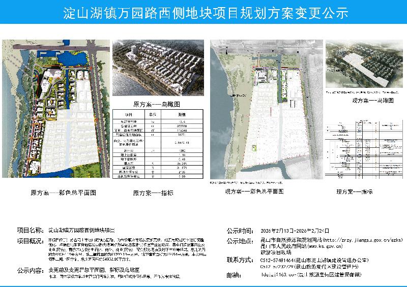 淀山湖镇万园路西侧地块项目规划方案变更批前公示