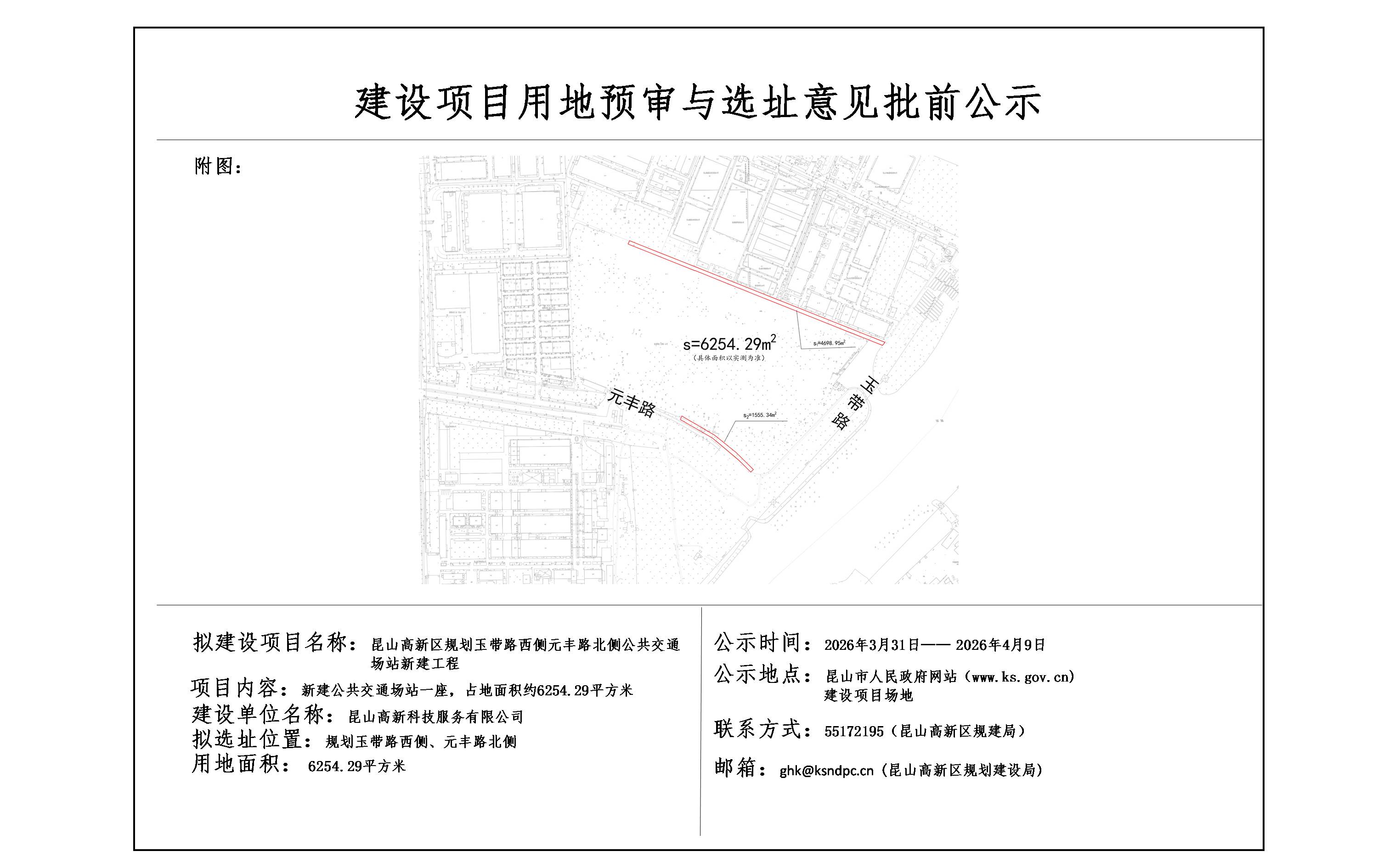 昆山高新区规划玉带路西侧元丰路北侧公共交通场站新建工程用地预审与选址