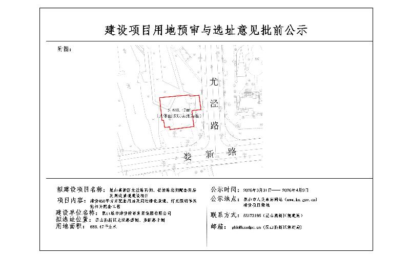 昆山高新区尤泾路西侧、娄新路北侧配套用房及周边景观建设项目用地预审与选址