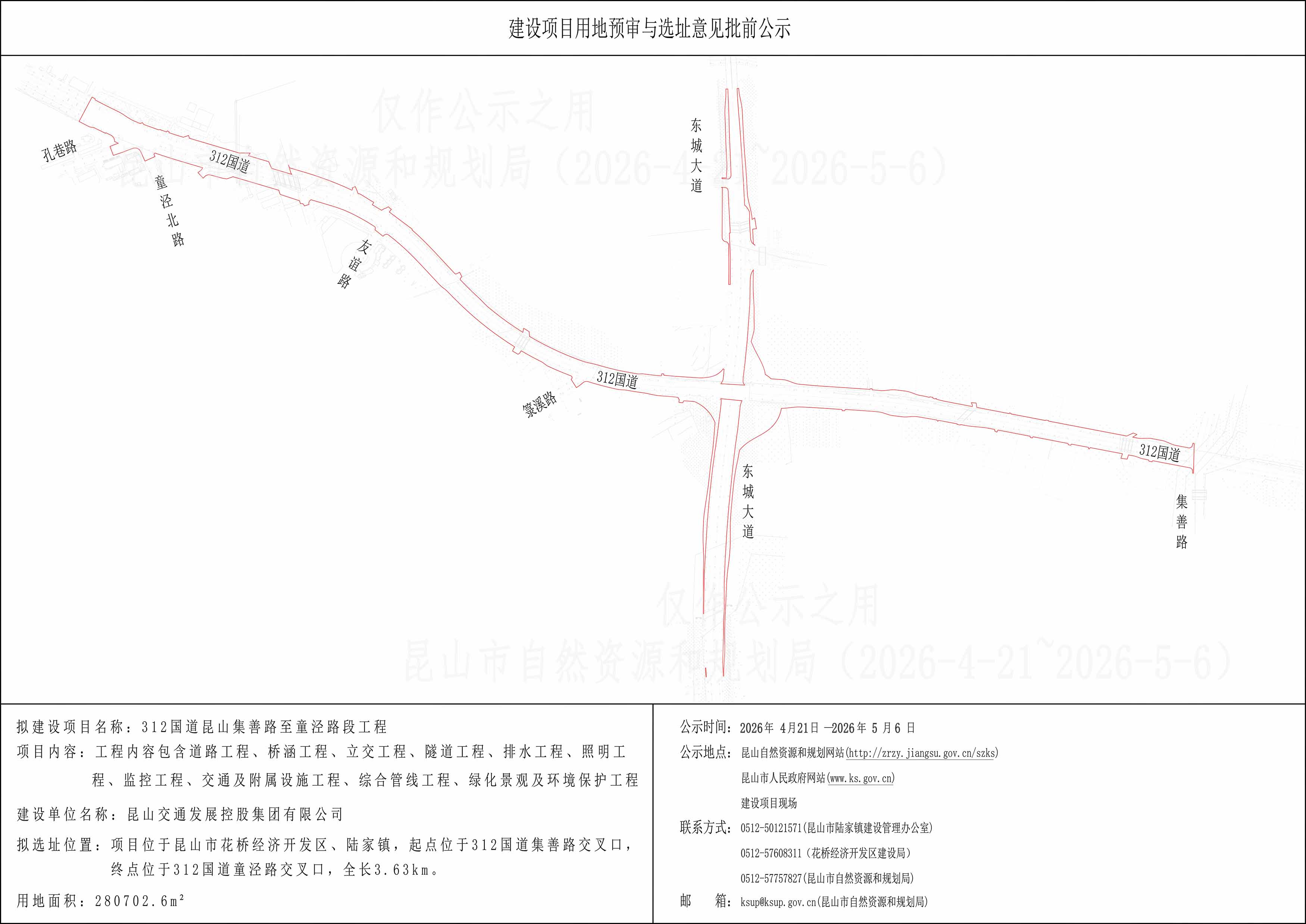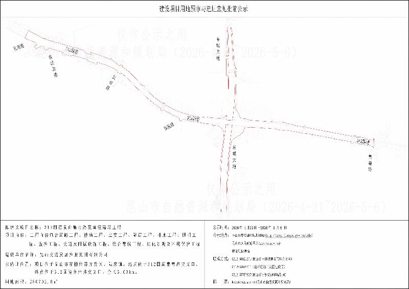 312国道昆山集善路至童泾路段工程建设项目用地预审与选址意见批前公示