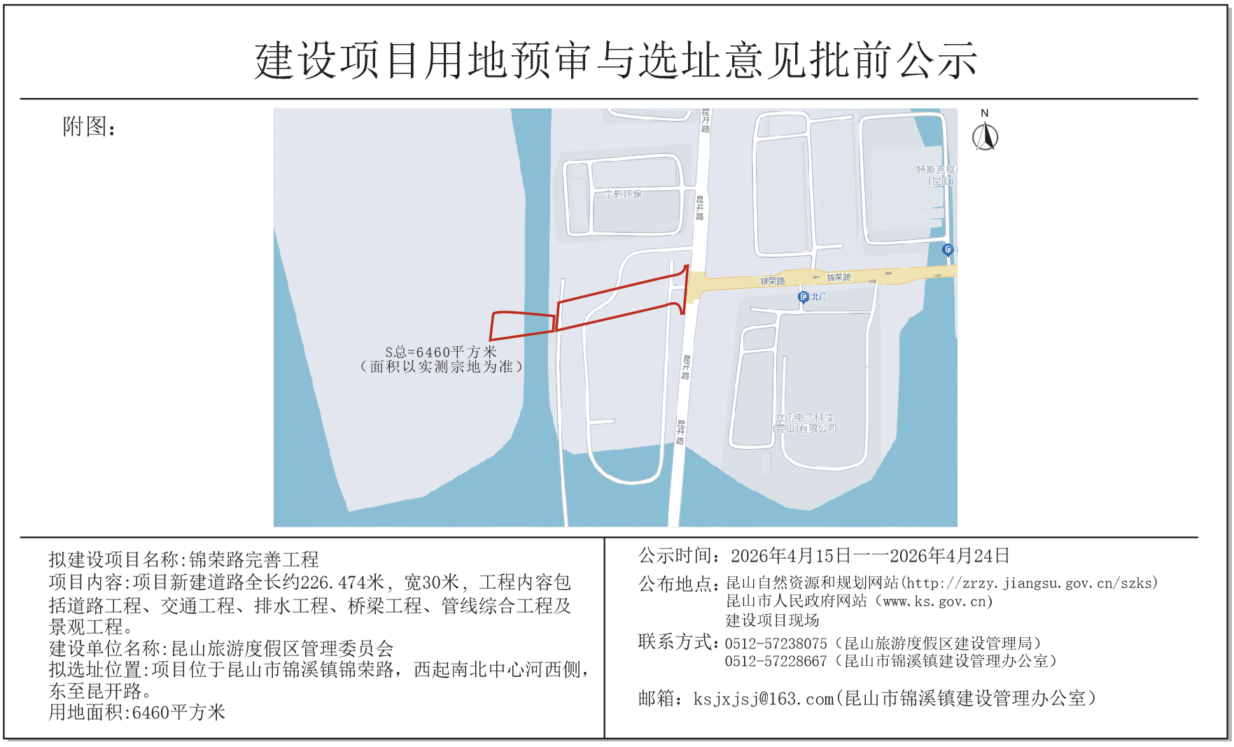 锦溪镇锦荣路完善工程建设项目用地预审与选址意见批前公示
