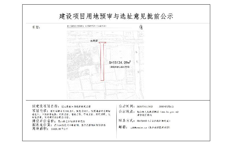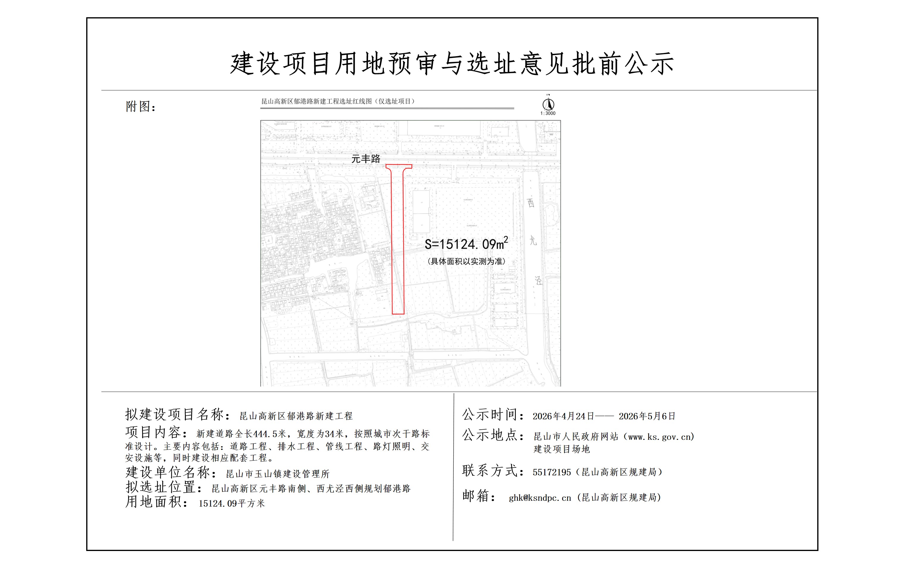 昆山高新区郁港路新建工程建设项目用地预审与选址意见